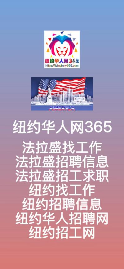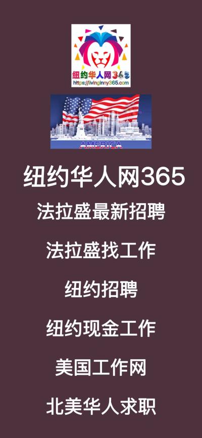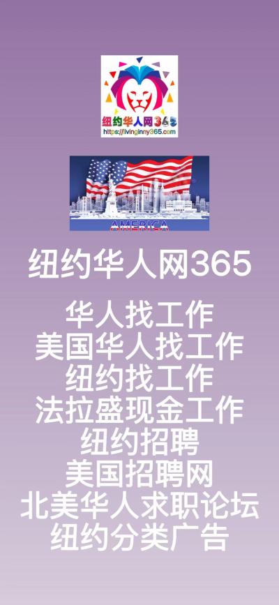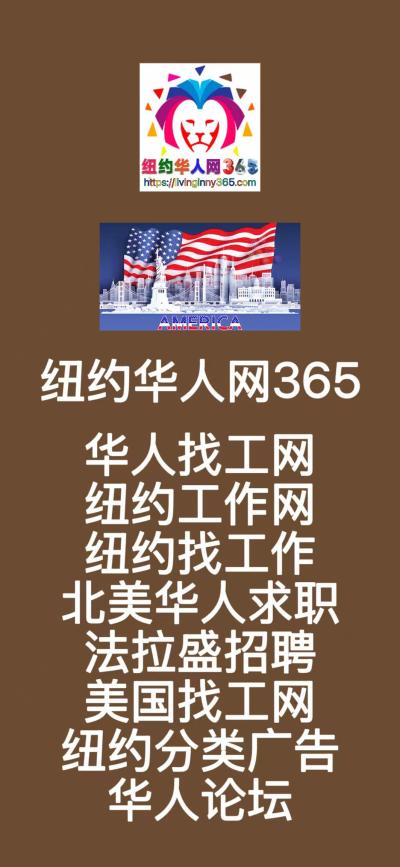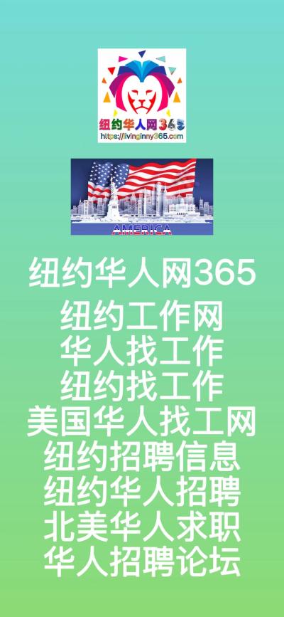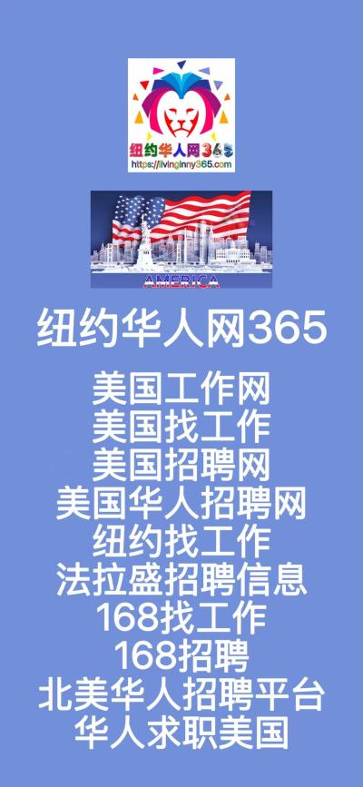 🦁纽约华人网365是北美华人首选的一站式资讯与分类信息权威平台,汇聚最新 纽约工作网、美国找工网、美国华人招聘网 等优质资源,覆盖 纽约找工作、168招聘、168找工作、纽约租房、房屋出租、二手车买卖、搬家装修 等生活与工作信息,让您快速获取所需资讯。
