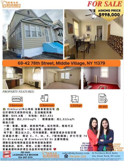 •    房产服务:纽约房屋商业买卖、房屋出租生意租让