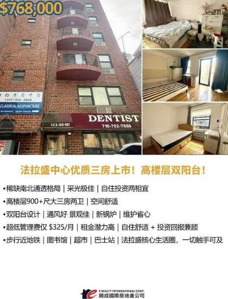 法拉盛这样寸土寸金的核心住宅区,真正兼具空间、采光、交通与投资属性的三房单位本身就非常稀缺。本次由本地资深团队独家推出的高楼层三房两卫公寓,位于133st / 41 Ave 核心生活圈,不仅拥有舒适居住体验,同时具备稳定租金回报能力,是当前市场中少见的“可自住、可收租、可长期持有”的综合型优质资产。