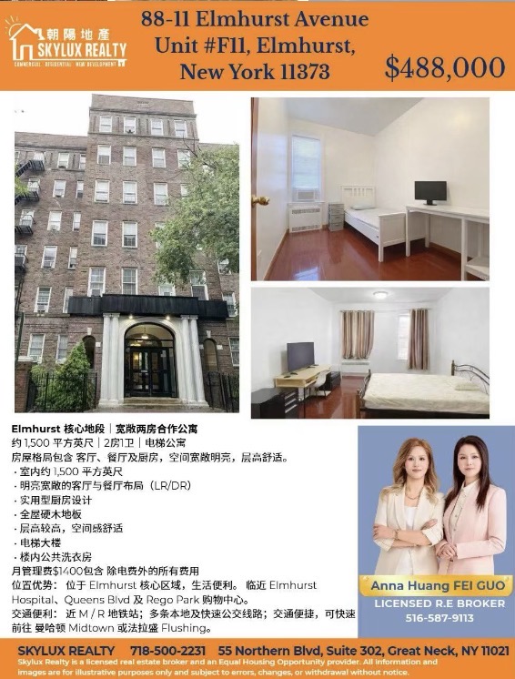 皇后区Elmhurst优质电梯合作公寓出售|黄金生活圈稀缺大户型