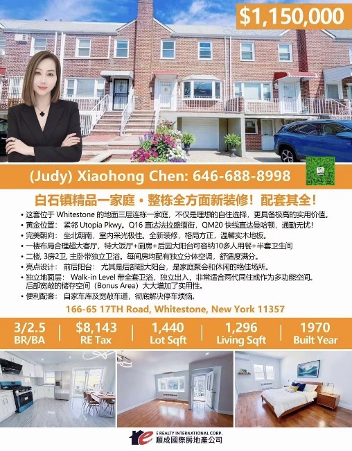 皇后区高端居住区Whitestone的全新升级精品一家庭住宅正式上市,整栋全面翻新,空间利用率高,居住舒适度强,是自住改善型家庭与多代同住家庭的优质选择,同时具备长期保值与稳定资产属性。