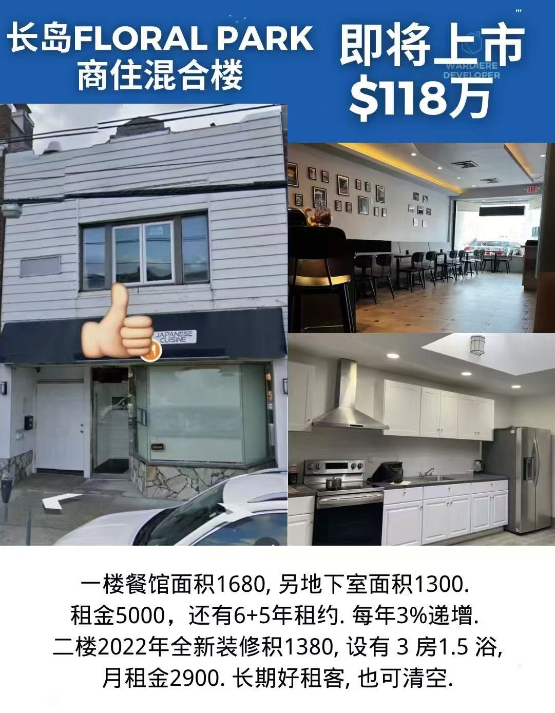 独家代理,欢迎合作转发长岛 Floral Park 商住混合楼出售 售价 $118万(付款灵活【地理位置】