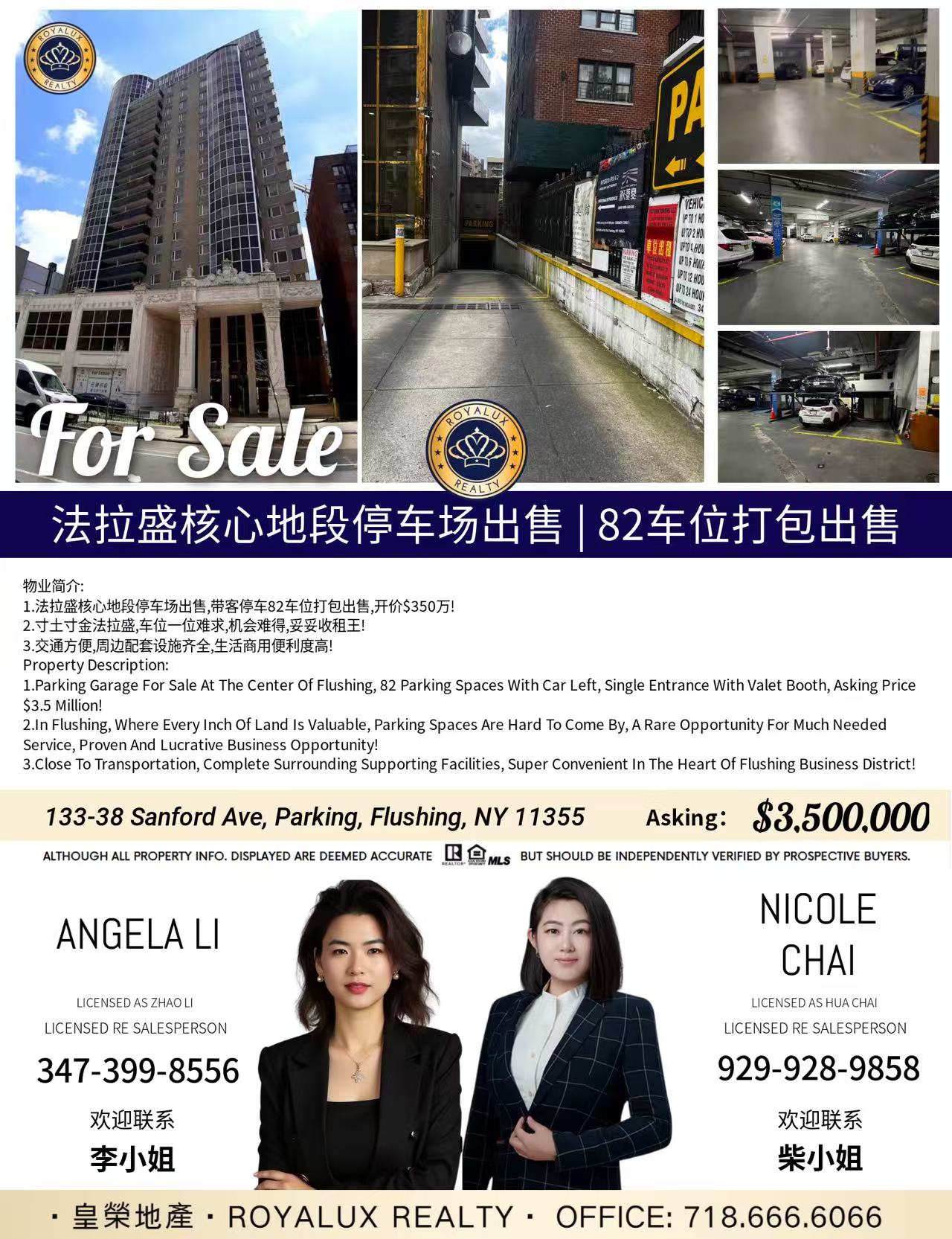 🌟法拉盛核心地段停车场出售,带客停车82车位打包出售,💰开价$350万!