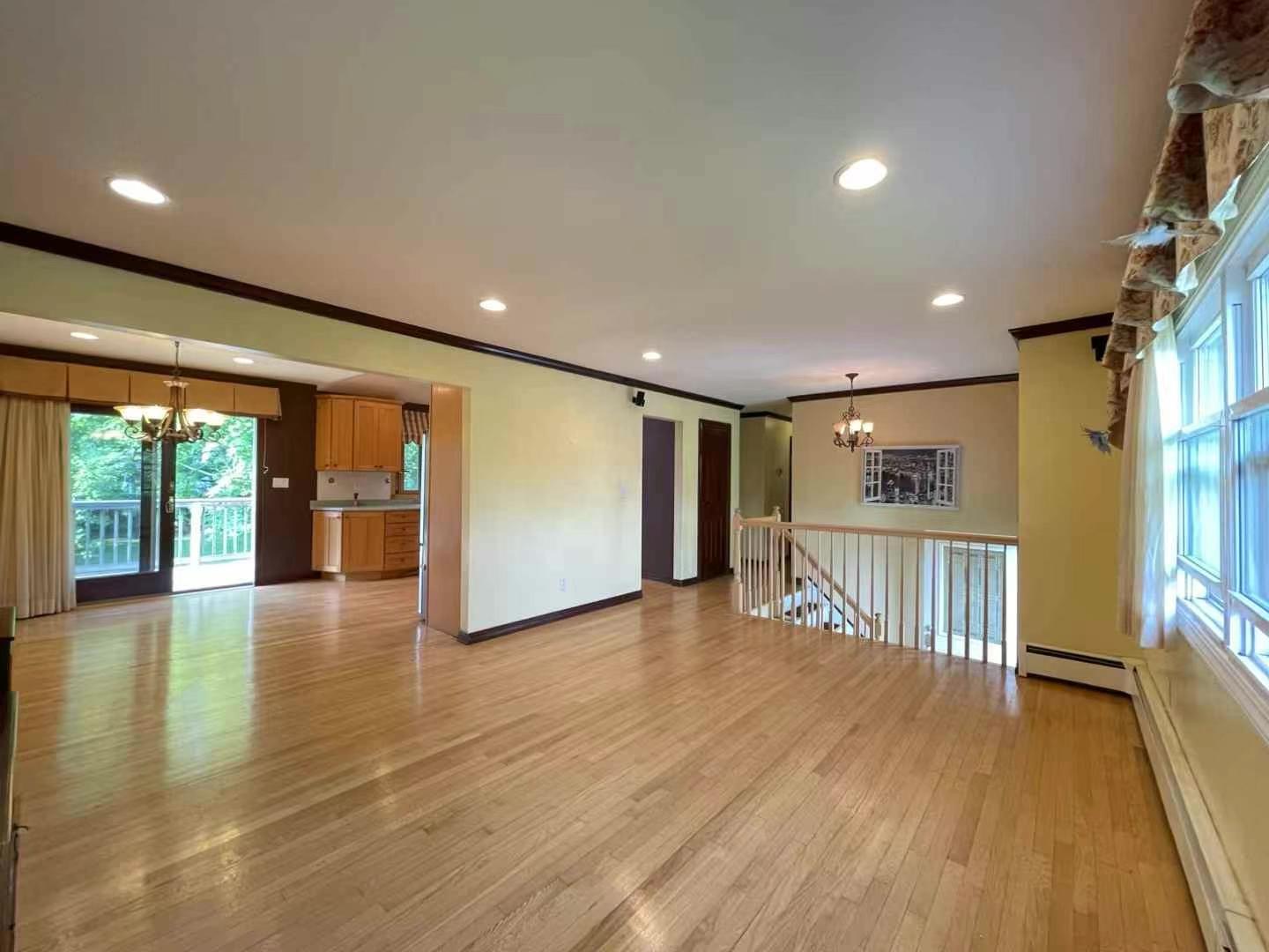 🏠2楼: 1270尺,门厅+客厅+餐厅+开放式厨房,3房1浴,实木橱柜,实木地板