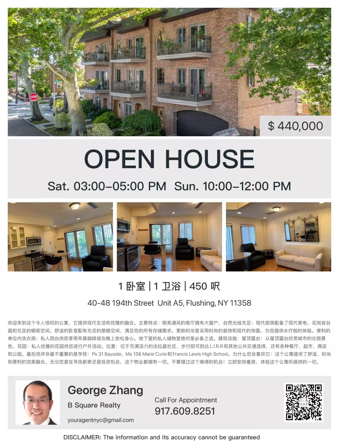 地址:4048 194th St APT A5, Flushing, NY 11358, mls # 879597 卖家付经纪费,欢迎转发合作,咨询约看