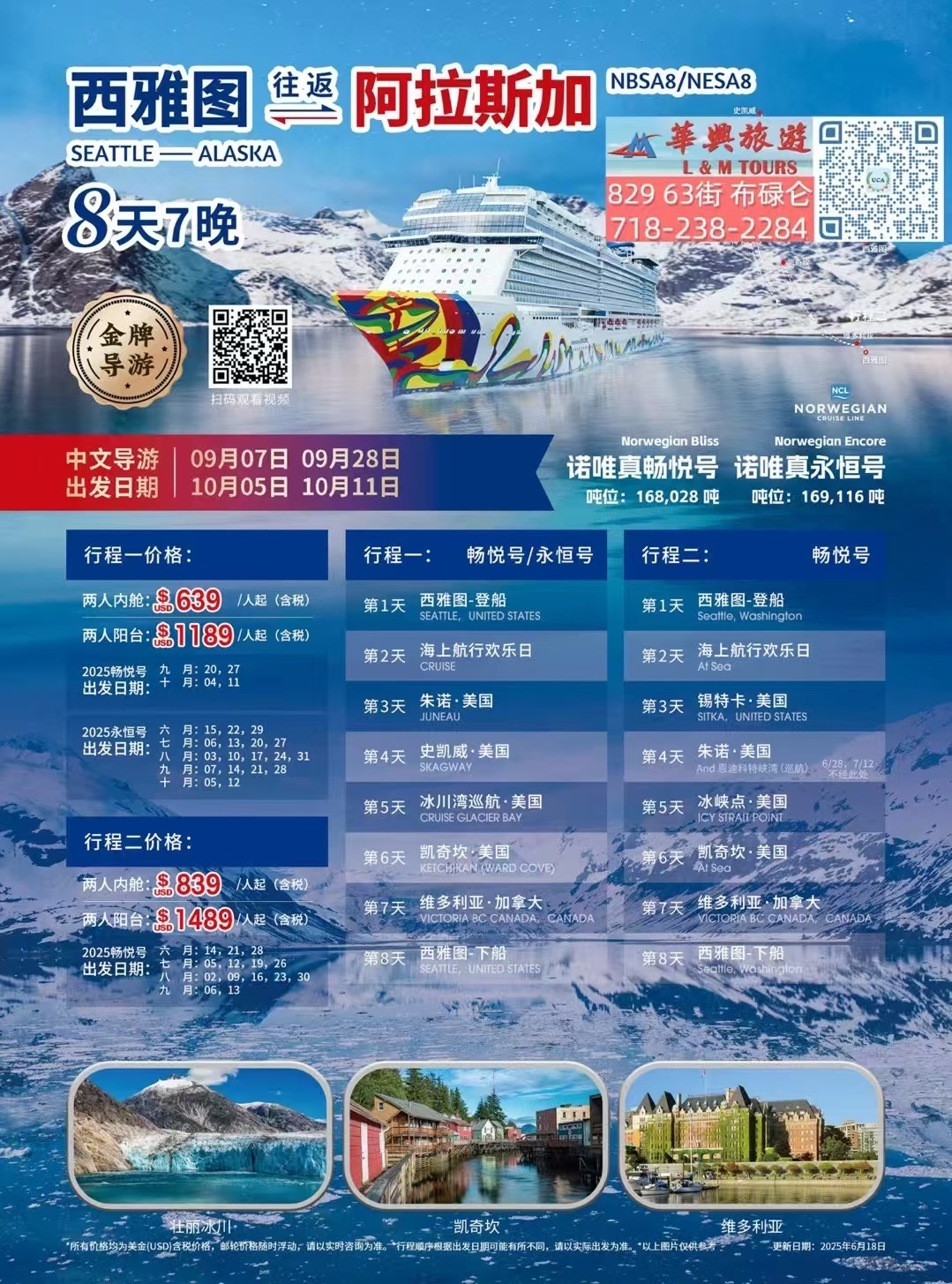 纽约当地华人旅行社推荐 优选法拉盛出发中文团服务口碑极佳华人首选纽约法拉盛旅游社 官方认证中文服务 热门行程天天发团🌟2025年 诺唯真邮轮 中文导游系列航线