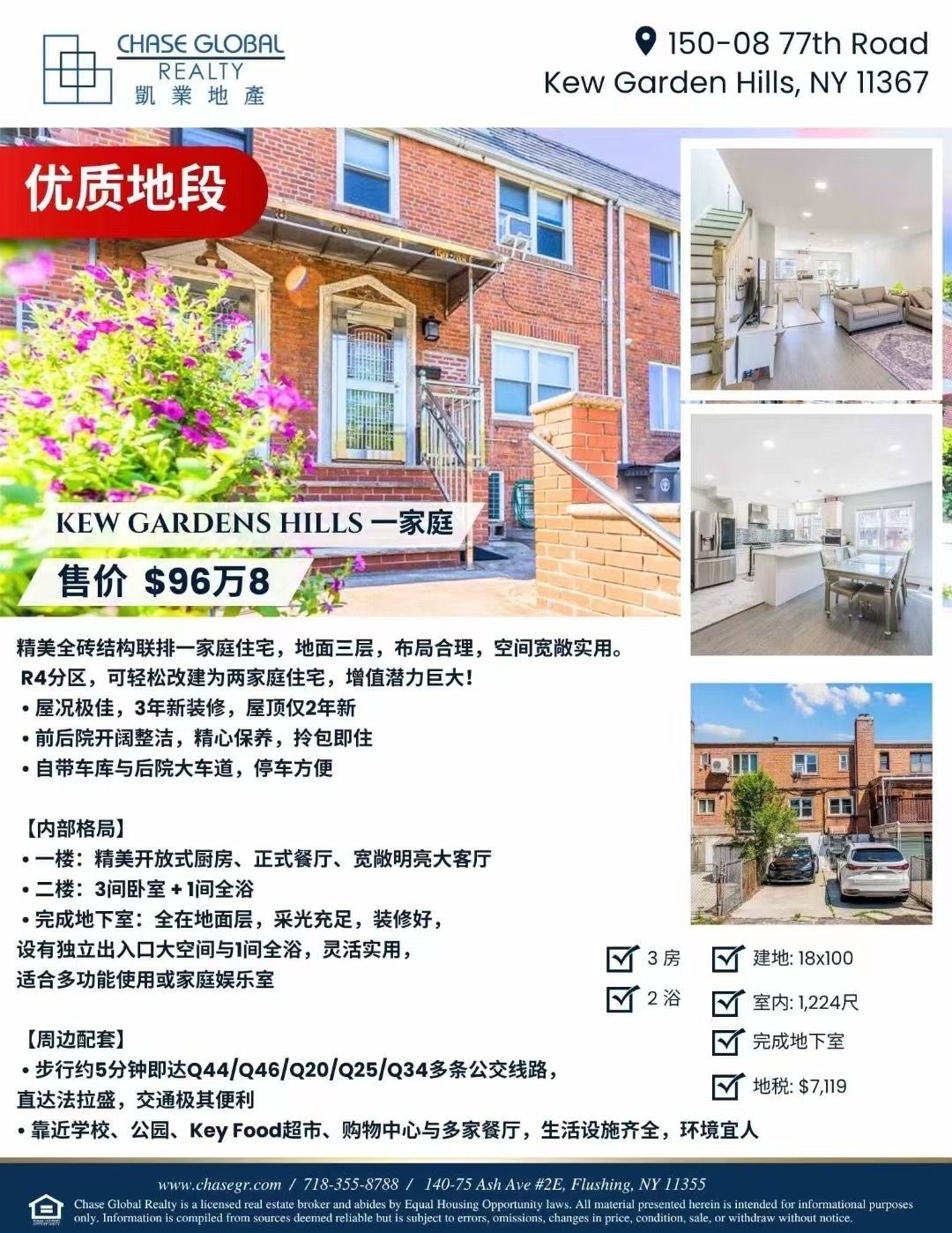皇后区房子出售独家代理,又一爆款好房源 位于法拉盛 Kew Gardens Hills