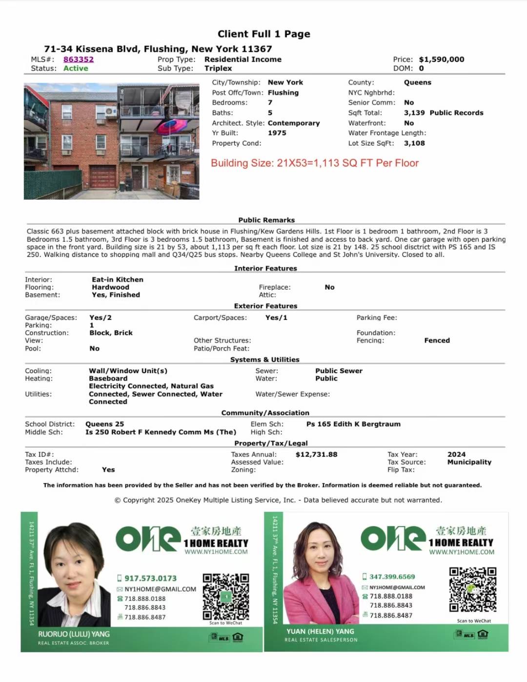纽约法拉盛663多家庭房产出售 Flushing法拉盛多户住宅出售信息 投资自住两相宜 华人热搜房源Open House tomorrow from 1pm to 3pm Welcome all! 663 classic property for sale