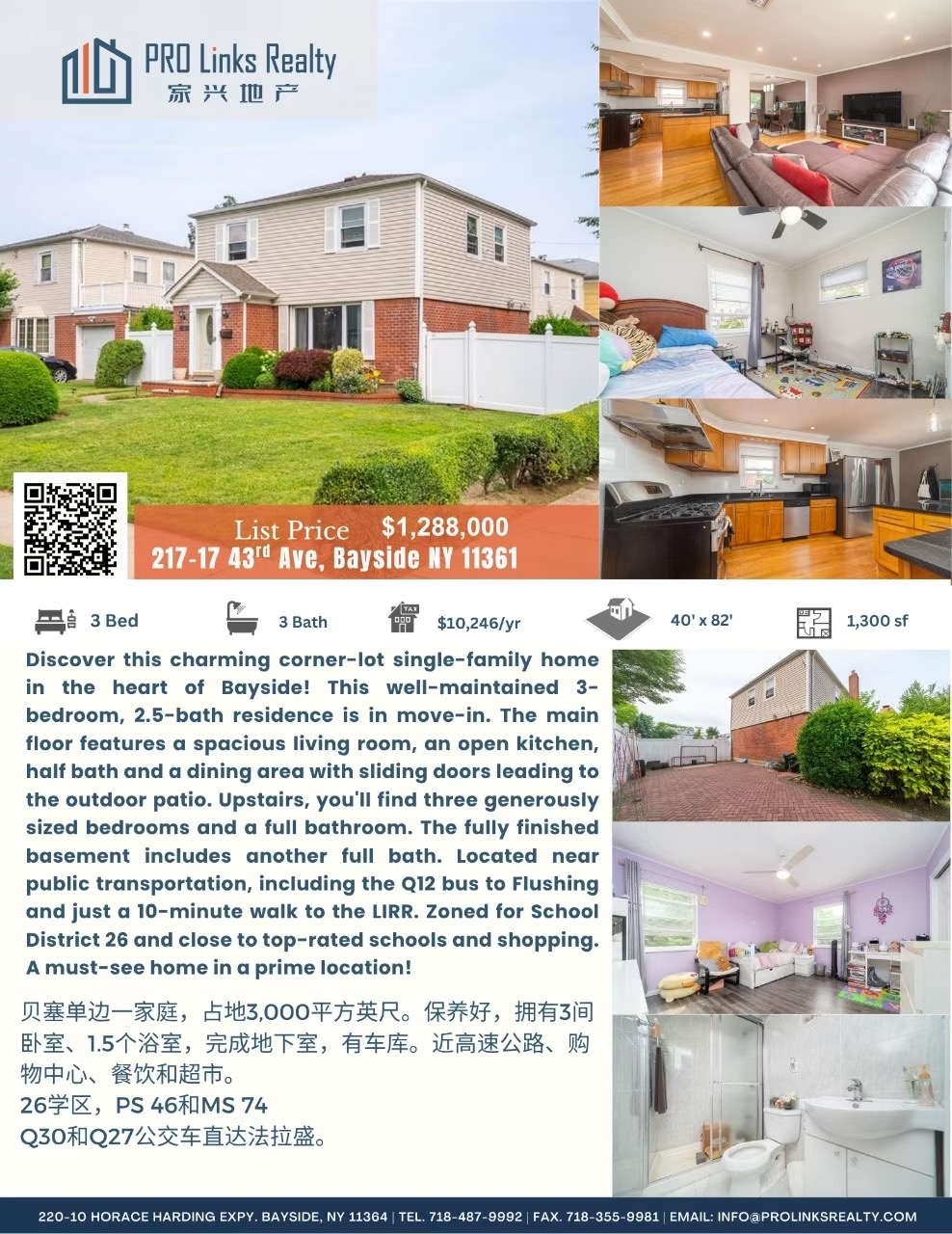 贝赛一家庭出售信息更新 🔥新上市独立1家庭🧧售$128万83房 2.5浴, 保养好,拎包入住街角,地税$10,246/年