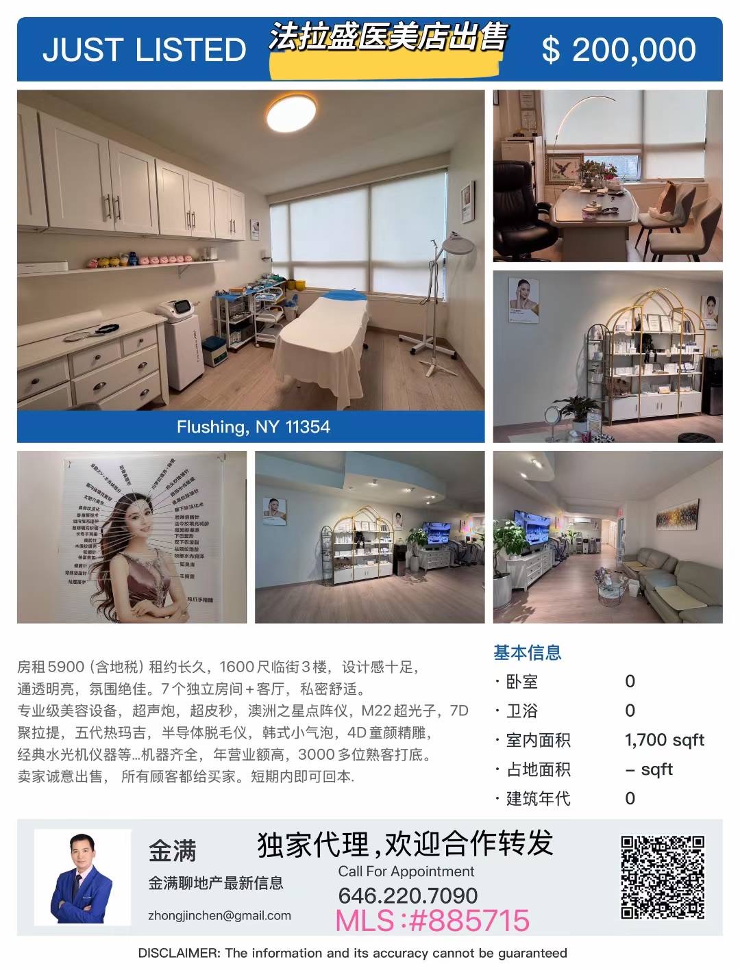 法拉盛中心 医美店出售买店必看. 创业者的福音
