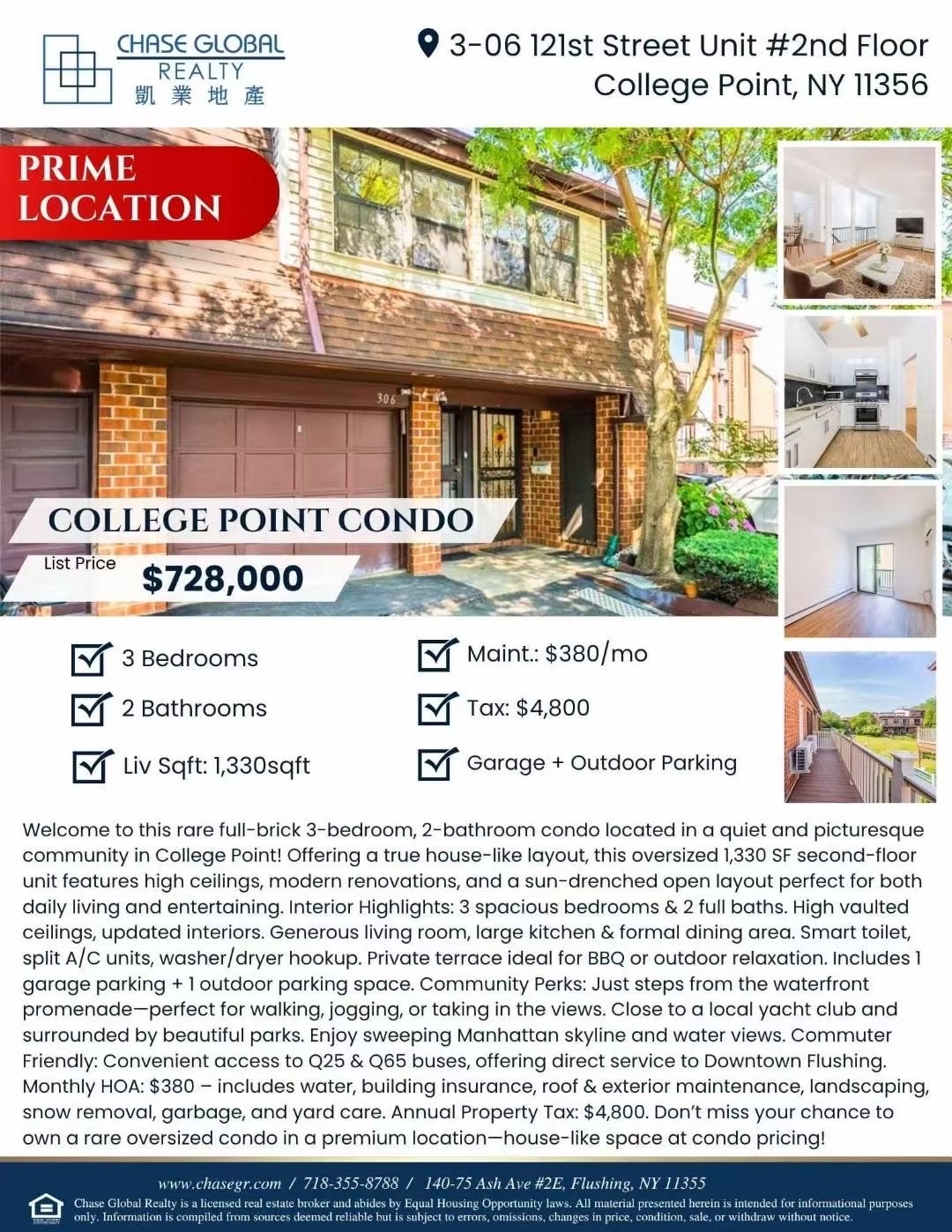 📍地址:3-06 121st St #2nd Floor(单元#77C)