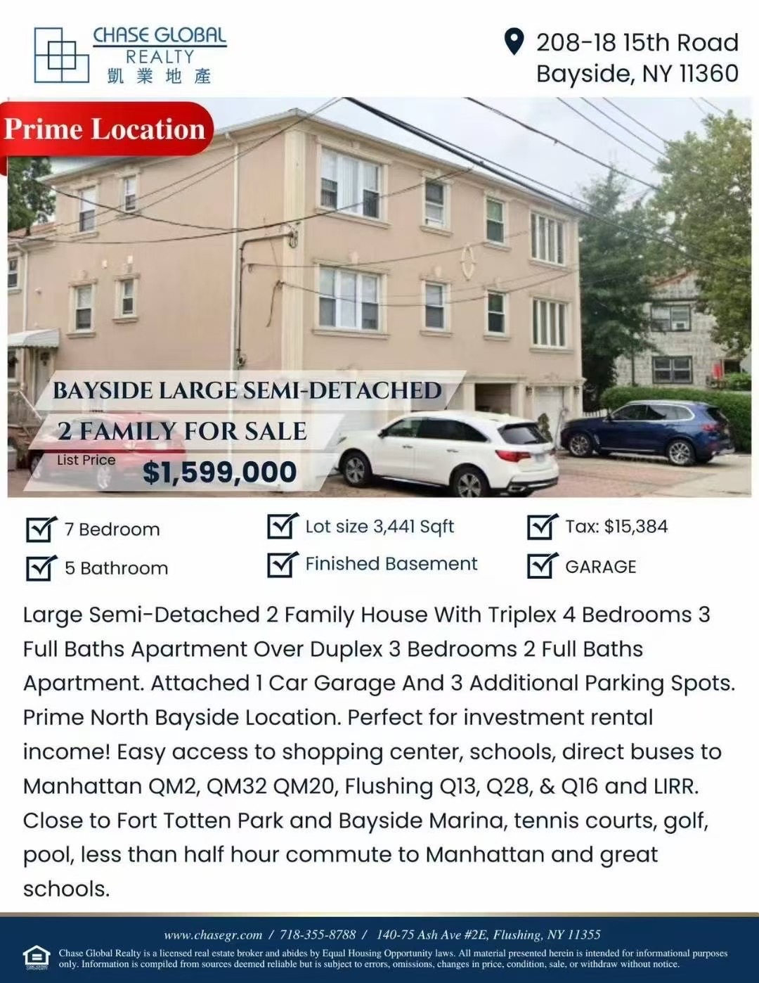 📍208-18 15th Road, Bayside, NY 11360