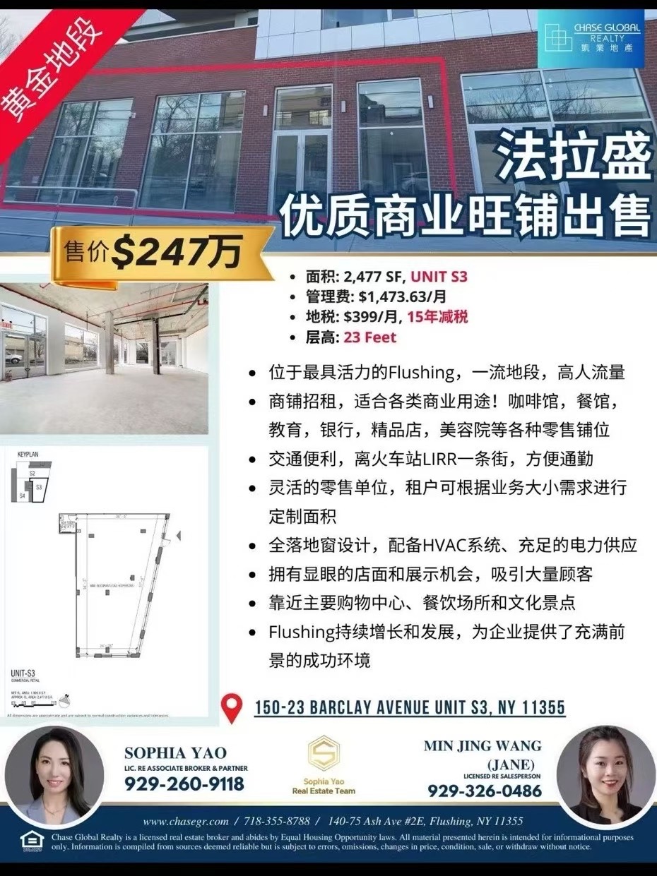 生意转让出售 法拉盛商铺出售 人流密集区铺面 高曝光零售空间 适合各类生意 法拉盛黄金店面出租 精选街铺 热门行业经营首选 近地铁近停车场 法拉盛康斗带阳台出售 近Main St地铁站 通勤方便法拉盛中心地段康斗出售 稀有房源 楼龄新 配套全 法拉盛康斗出售 高回报潜力大 适合首次购房或出租法拉盛全配套康斗出售 包车位地下室 安保管理完善