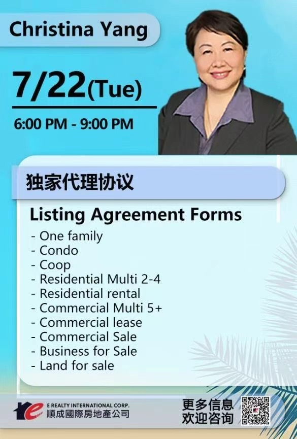 顺成地产 E Realty International Corp 纽约顺成房地产法拉盛 顺成国际房地产 金牌华人经纪📈 想提升专业度、增强客户信任、提高签约转化?📅 本周一到周五,顺成地产为大家精心安排了多场高含金量的培训课程!课程预览👇