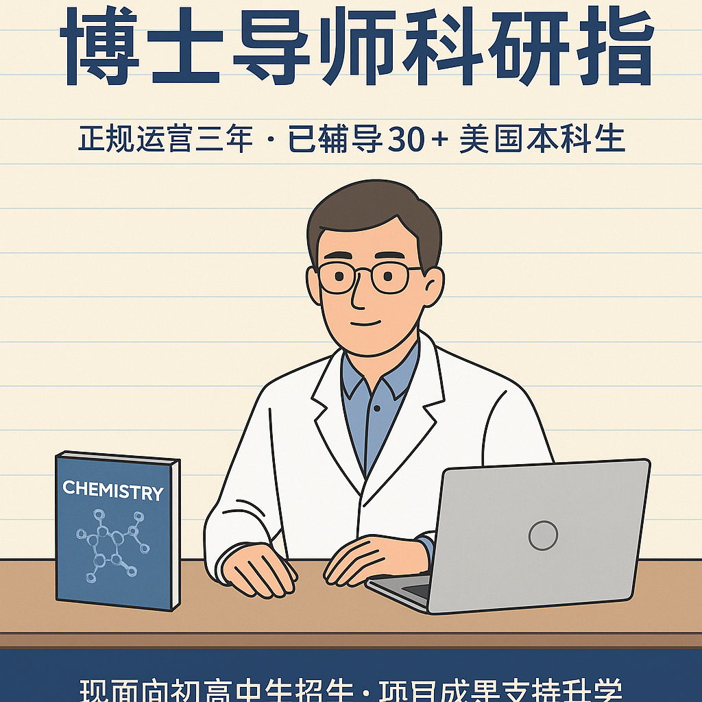 我本人拥有美国化学博士学位,现经营 BioPhdone LLC 开展正式科研项目辅导服务,过去几年中,我曾指导过 30 多位美国本土本科生完成科研训练与报告写作,并积累了丰富的一对一辅导经验,目前,我们也将服务拓展至初高中生,推出适合升学支持、逻辑训练和成果展示的线上科研项目辅导。