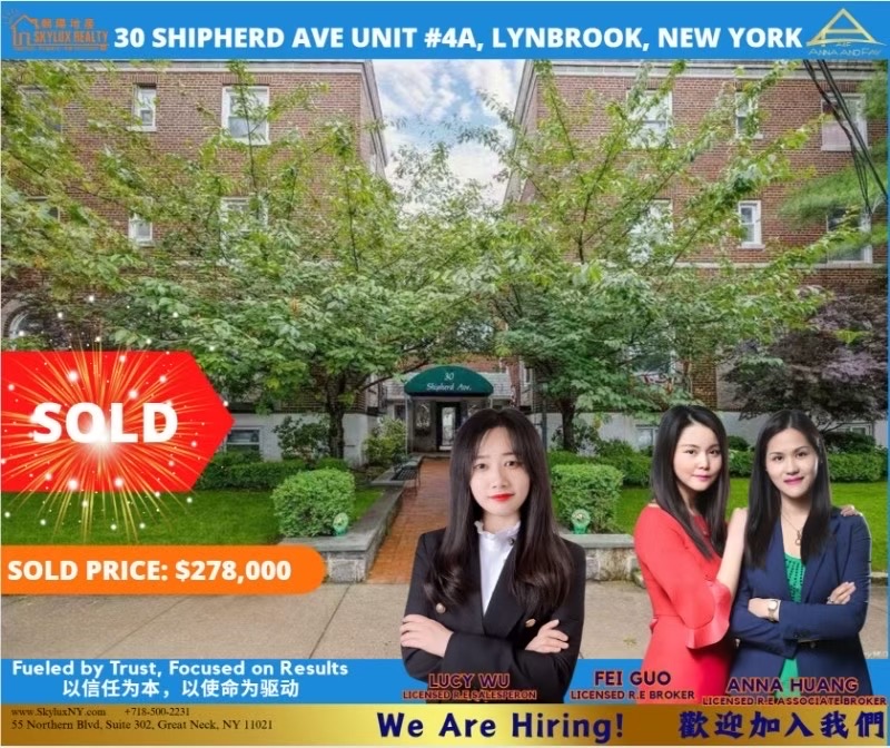 纽约地产经纪人 纽约地产公司 独家代理进入合同纽约华人房地产公司 纽约房地产经纪人New York Real Estate Agents👏[Party]Congrats to our team Anna, Fay , Jenny,Lucy,Sabrina ,Anne and Steve on the property sale!Great job and let’s continue the awesome work[Party]🔥❤🔥恭喜Anna, Fay , Jenny,Lucy,Sabrina ,Anne and Steve 成功售出房产!加油努力 向前迈进🎉👏🏡