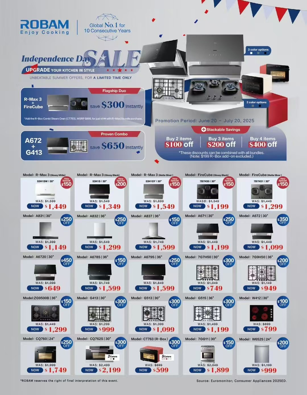 新推出暑期钜惠,TCL和Robam强强联手清凉一夏:购买任意老板Roabm电器即免费赠送价值$1749超低温冷暖分体式空调,数量有限(1000以上送一套,2000以上送两套,3000以上送三套,以此类推)先到先得!