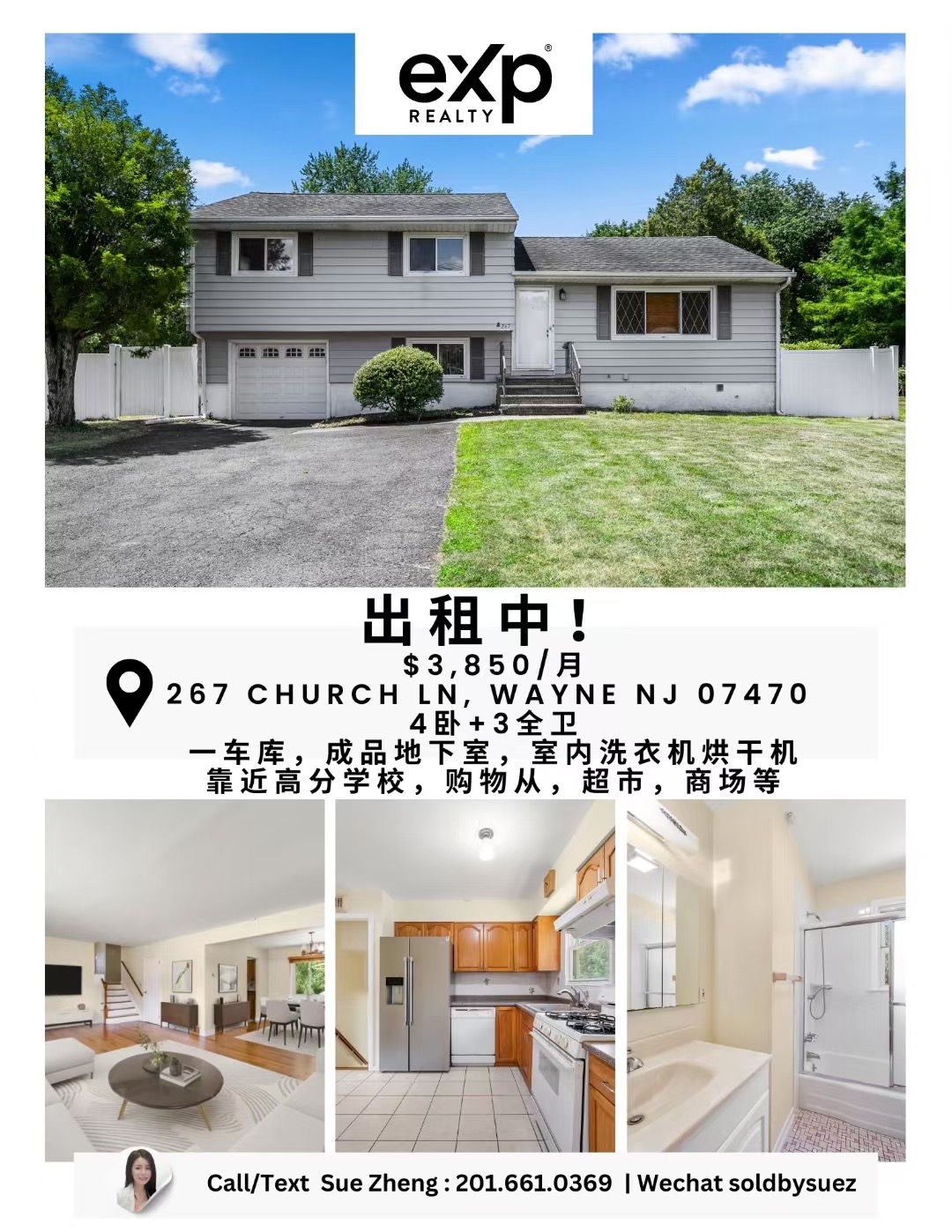 🏡新泽西租房【出租房源 | Wayne 独立屋】💰租金$3,850/月📍地址:267 Church Ln, Wayne, NJ 07470