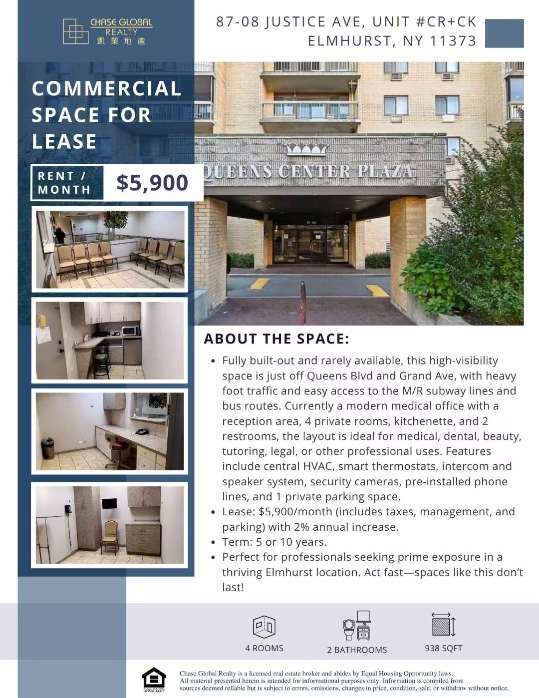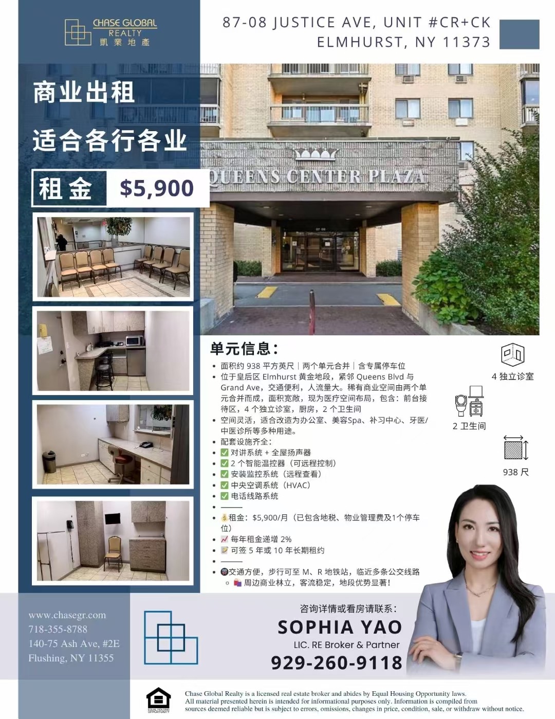 纽约商业出租|适合各行各业📍地址:87-08 Justice Ave, Elmhurst, NY 11373(#CR 和 CK)