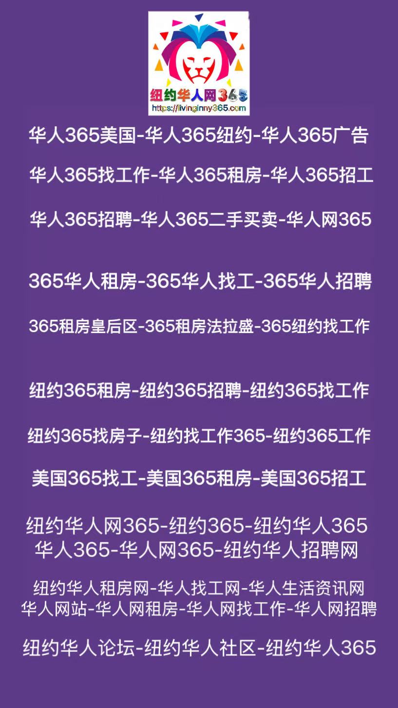纽约华人网365:纽约华人租房最全指南-纽约华人网365为广大在美华人提供最全的纽约找工作、纽约租房、法拉盛华人招聘、曼哈顿华人生活资讯、纽约分类信息、二手市场、法律医生等本地服务,是纽约最受欢迎的华人信息平台。纽约华人网365提供海量纽约招聘信息,覆盖中餐厅招聘、送餐司机、法拉盛华人找工、美国华人招工、超市招聘、清洁工、月嫂等热门岗位,是纽约找工作的首选平台。