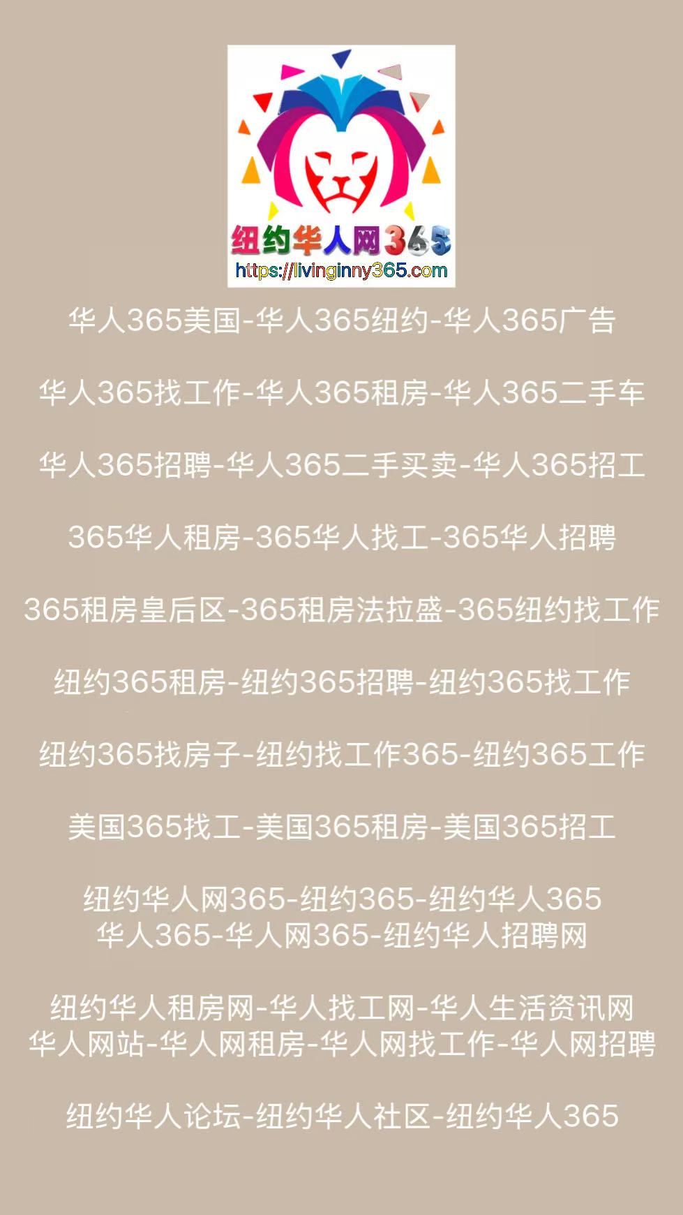 如果你在寻找「纽约华人租房网」、「华人找工网」、「华人网招聘」、「华人网站」等信息,请认准纽约华人网365(https://livinginny365.com)。