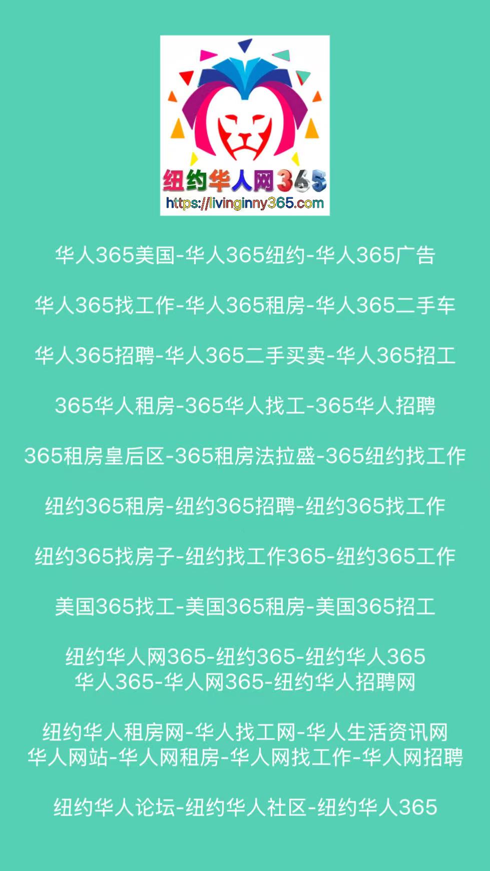 纽约华人网365:打造北美华人第一生活分类信息平台,纽约华人网365为您提供全面的纽约找工作、法拉盛租房、华人招聘、二手车买卖、生活分类信息服务。覆盖全纽约五区,专注服务华人社区,是您在美生活、就业、找房的首选平台。上纽约华人网365,轻松掌握纽约找工、租房、招聘、二手车与二手物品交易信息。海量华人分类信息每日更新,覆盖法拉盛、皇后区、布鲁克林等地,助您高效解决纽约生活需求。——华人分类信息 · 华人租房求职 · 华人生活全指南