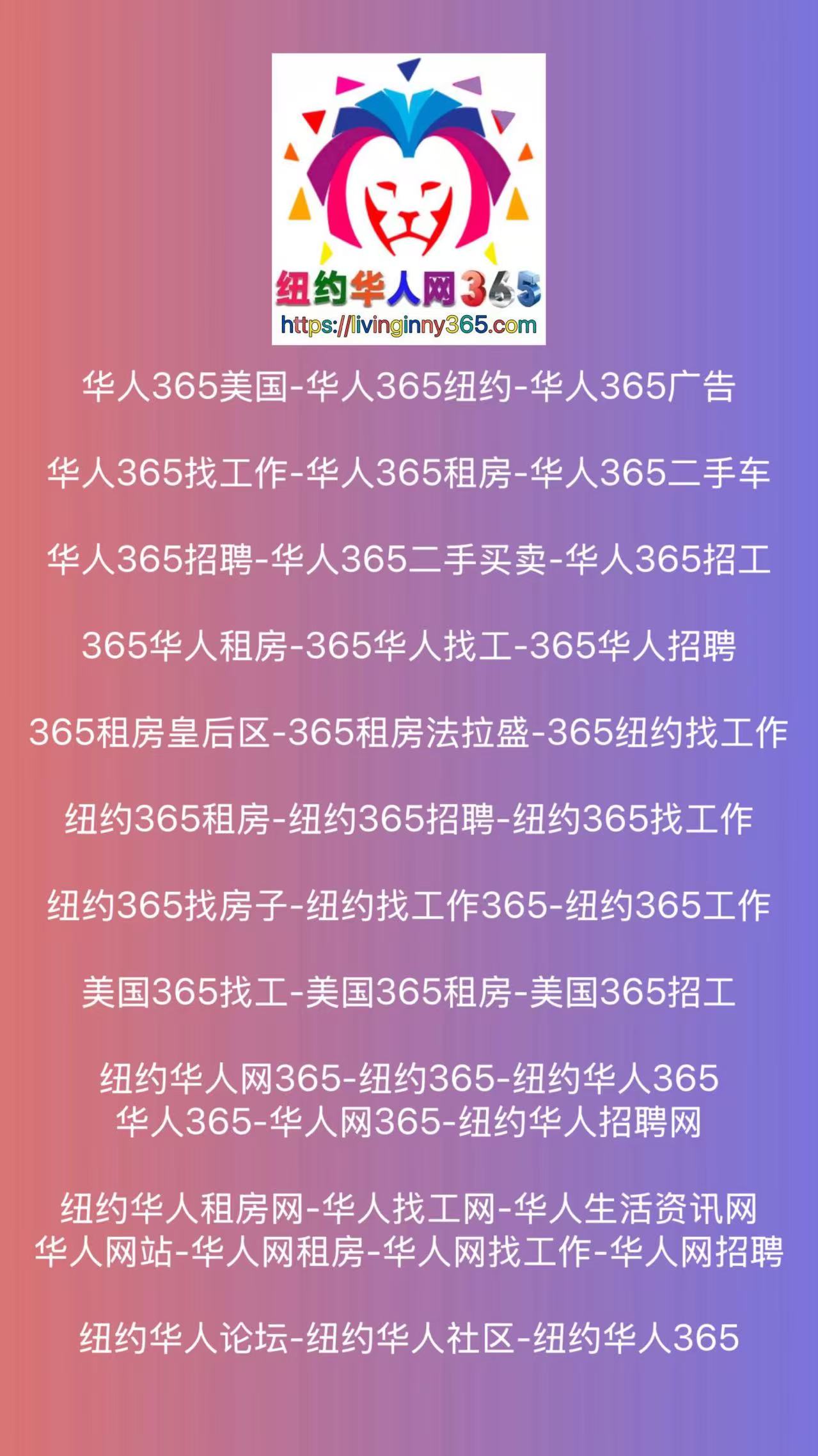 纽约华人网365:打造全美最强华人分类广告平台-在纽约华人网365发布最新分类广告,查找纽约找工作、租房、二手买卖、招聘信息。全美华人社区热议论坛、纽约本地生活资讯一站掌握!华人365全美分类信息平台,覆盖纽约租房、找工作、招工招聘、二手交易等信息服务。打造最受欢迎的美国华人论坛与社区广告网!