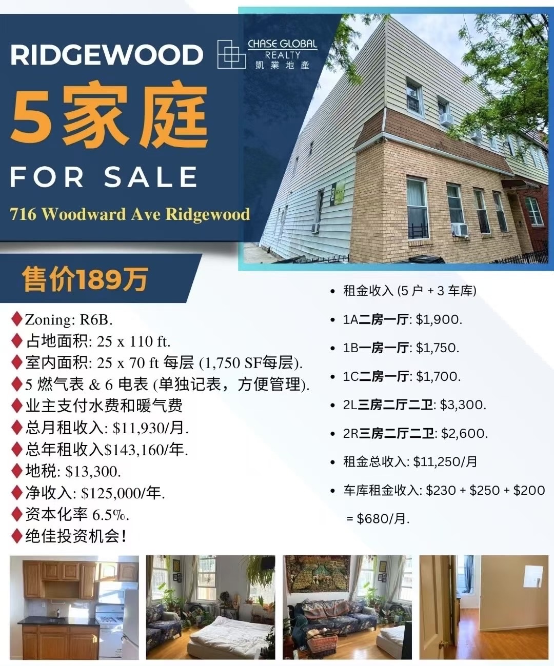 皇后区房子出售Ridgewood 5家庭出售 回报率6.5% 💰售价$189万(可谈) 已有多个offer
