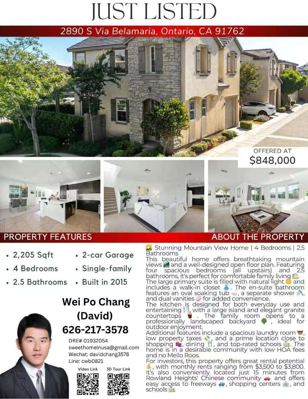 📍 2890 S Via Belamaria, Ontario, CA 91762