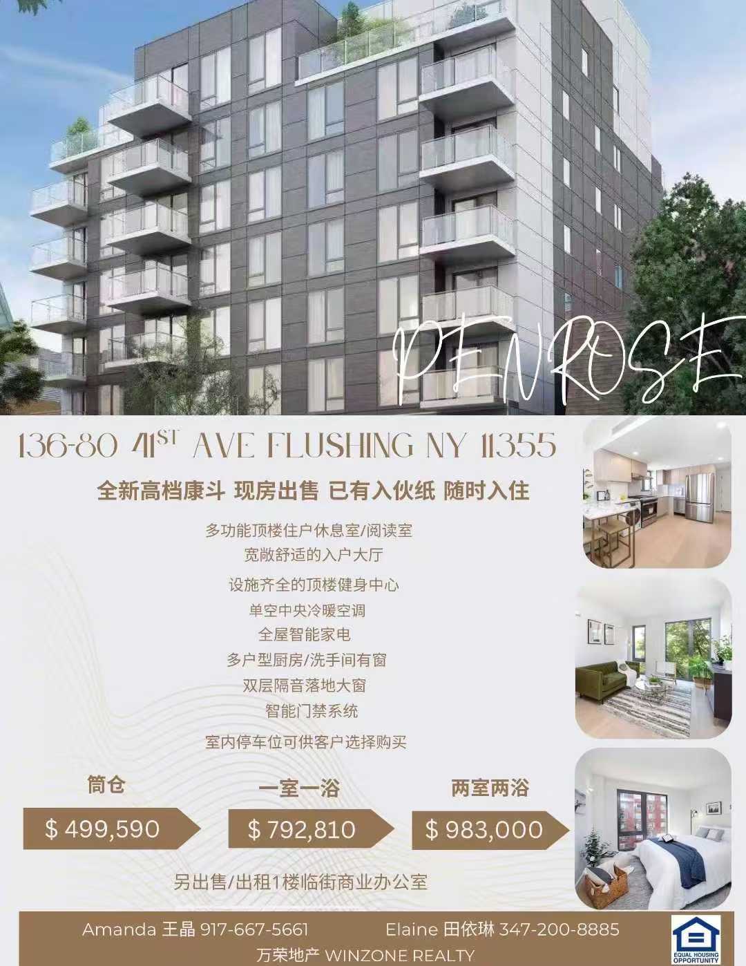 🏠 法拉盛限时特价 •仅此一套Penrose | 欢迎合作💰 售价仅 $499,000🔥 全新筒仓康斗 · 抢手朝南户型✨ 6楼大面积 🍳 通风采光好📈 可收租 $2,500/月,投资回报佳✅ 拎包入住,已有入伙纸 CO ✅ 黄金楼层,无遮挡采光✅ 适合自住 & 投资📞 咨询热线:Elaine 田 347-200-8885