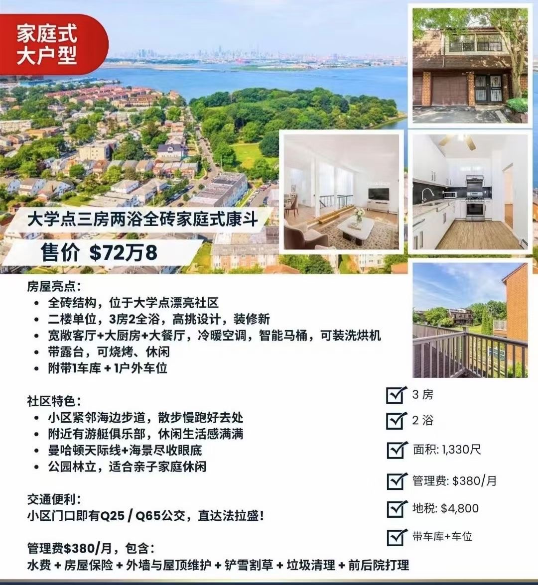 大学点家庭式大户型仅72万8🏠 全城性价比之王!大平层1330尺,仅$547/平方尺!🏠 大学点全砖三房两浴家庭式康斗 · 带车库+车位💰售价:$728,000