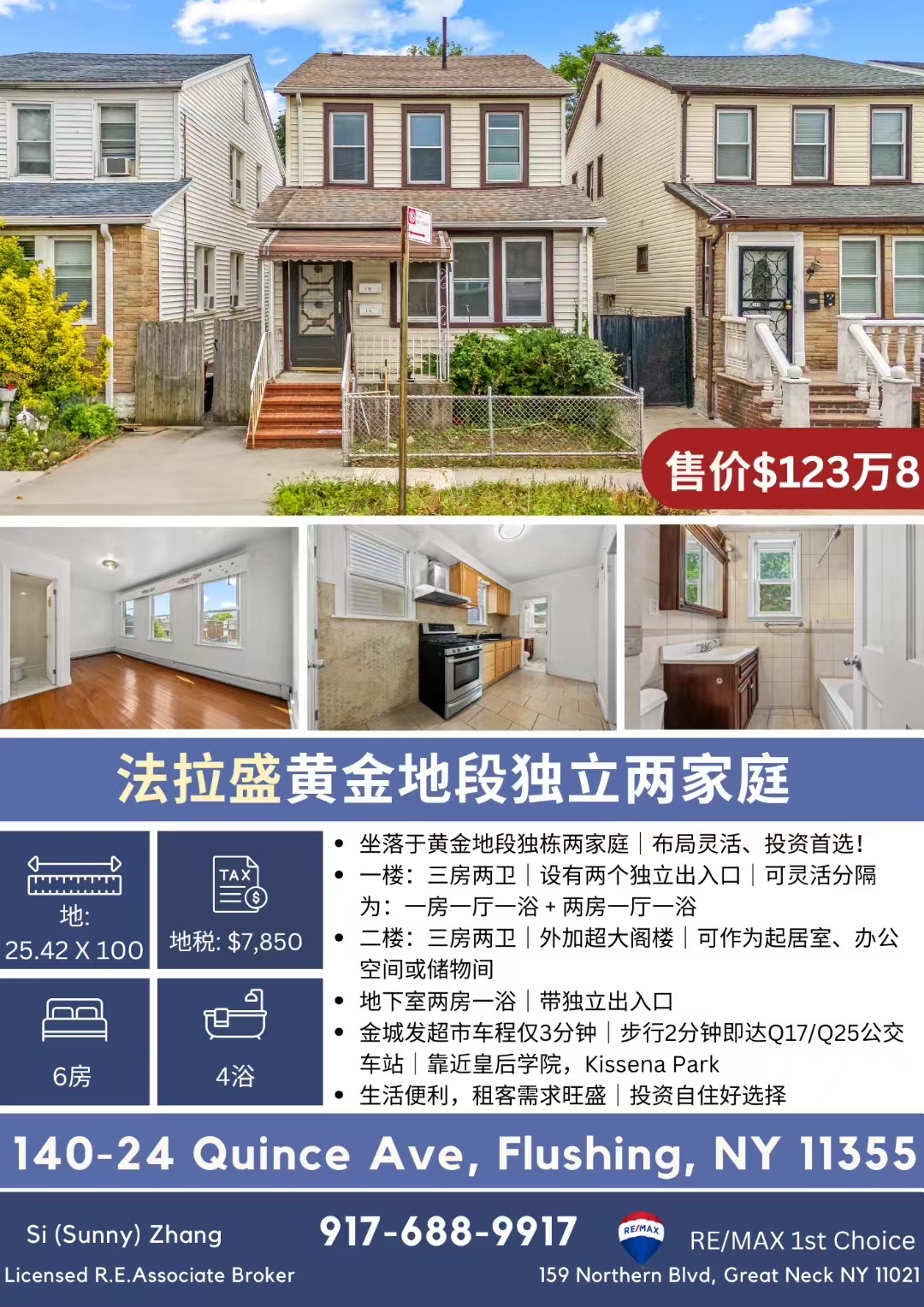 📍地理位置超便利:🛒 金城发超市车程仅3分钟🚶♀️ 步行2分钟即达Q17/Q25公交车站🎓 靠近皇后学院、🌳Kissena Park