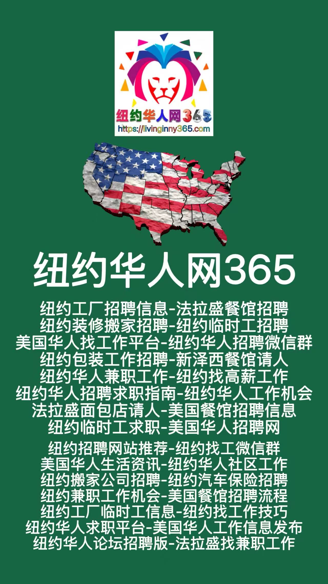 纽约华人找工作全攻略:最新招聘信息与实用求职秘籍。纽约华人网365提供最新最全的纽约招聘求职信息,覆盖餐饮、工厂、装修、医疗、法律等多个行业,精准匹配华人求职需求,帮你快速获得高薪工作机会,开启纽约职场新篇章!全面解读2025年纽约华人招聘信息,涵盖法拉盛餐馆请人、工厂招聘、装修搬家、专业岗位等海量职位。尽在纽约华人网365,助你轻松找到理想工作,快速融入纽约华人社区!