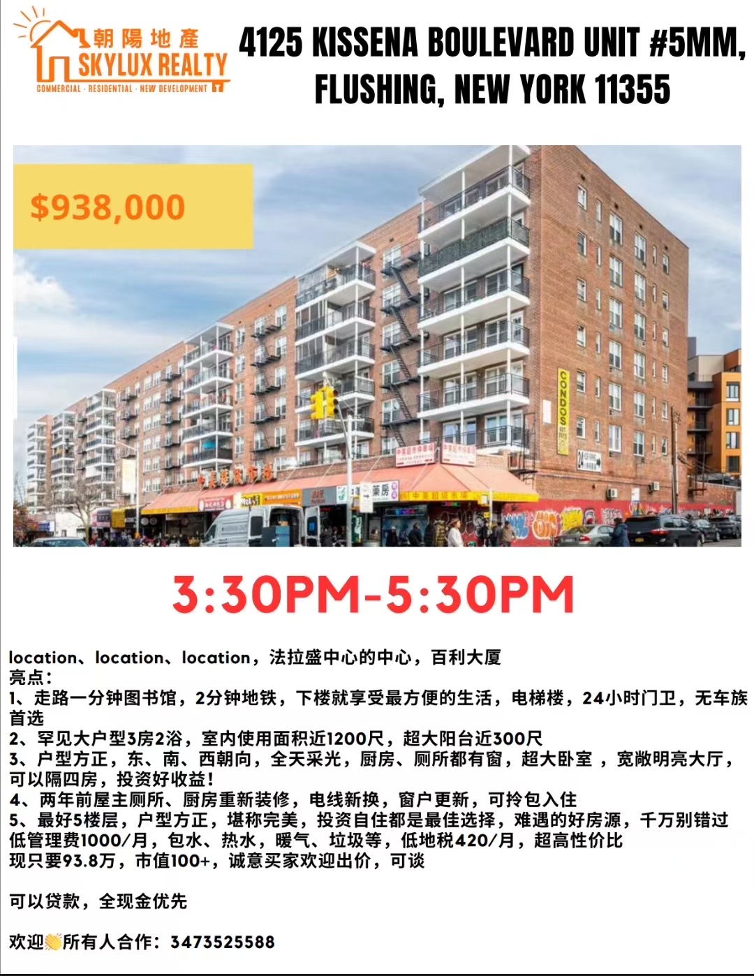 最新上市:周五周六3:30-5:30pm,open house法拉盛中心的中心,百利大厦