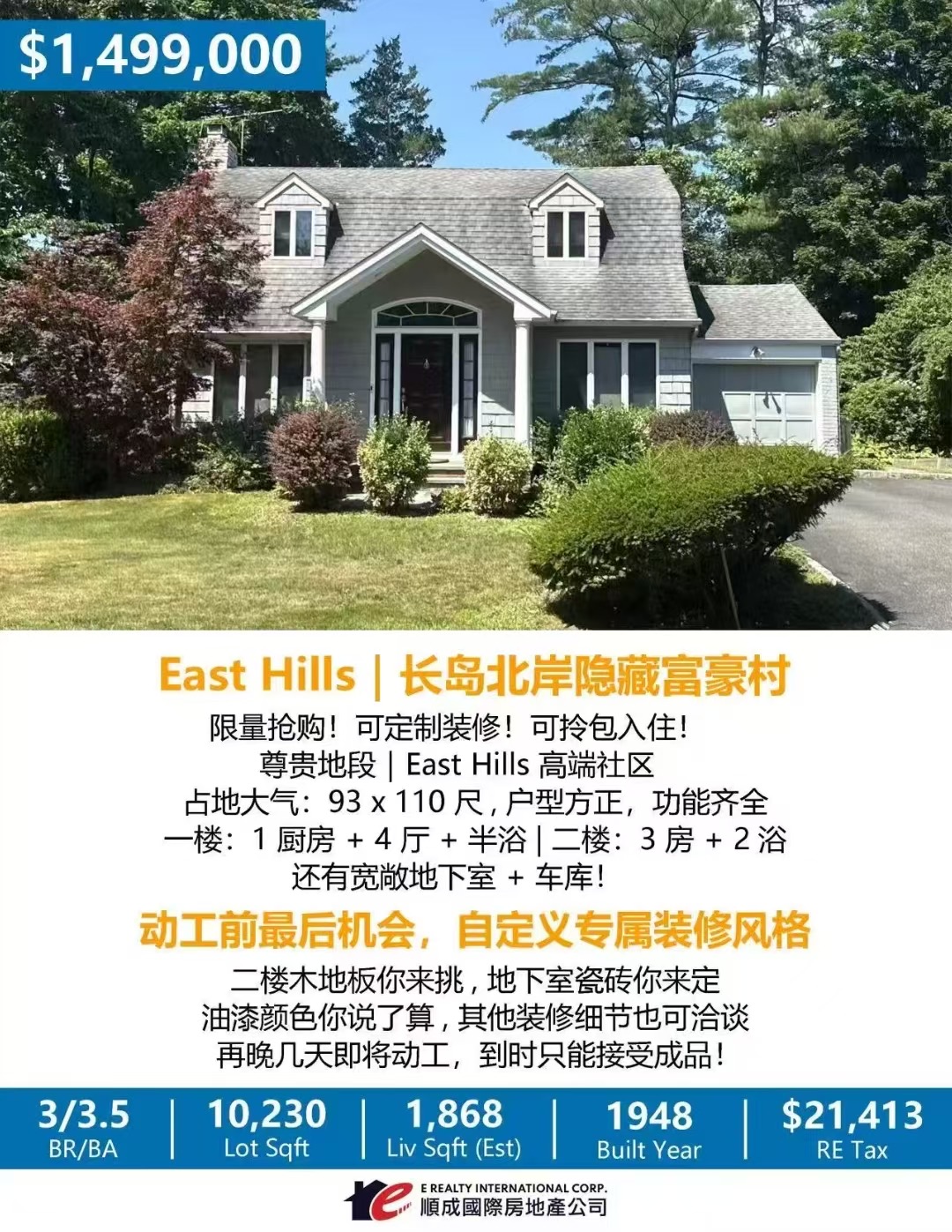 如果你了解Roslyn 长岛学区,也知道East Hill 社区,且想搬去长岛买学区房 不要错过这个机会💐长岛北岸的一颗隐藏富豪村——East Hills!💥抢先开抢!动工前还能定制装修!