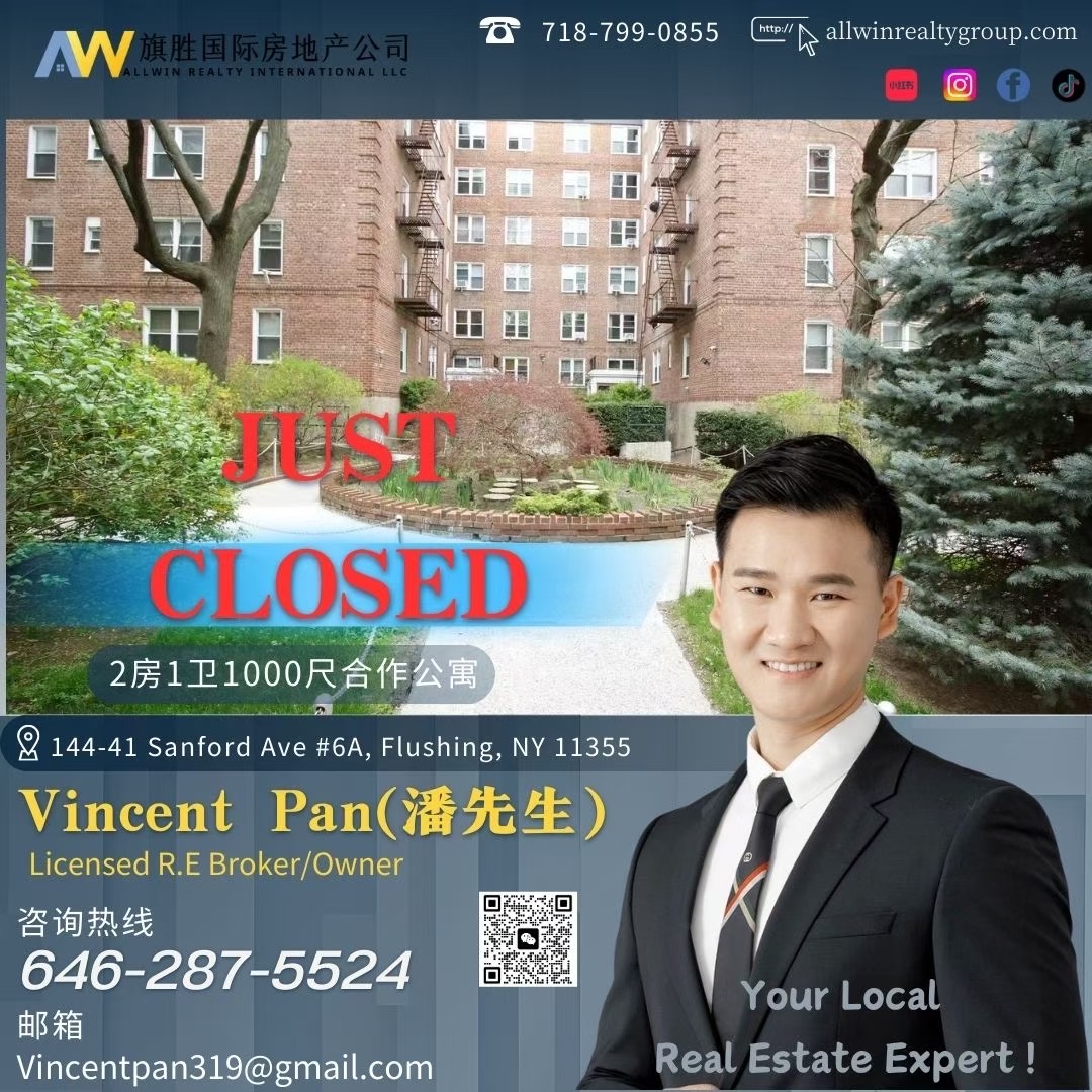 纽约地产经纪恭喜买家卖家!另有多套法拉盛全新公寓,1房1卫,2房2卫 $61万起