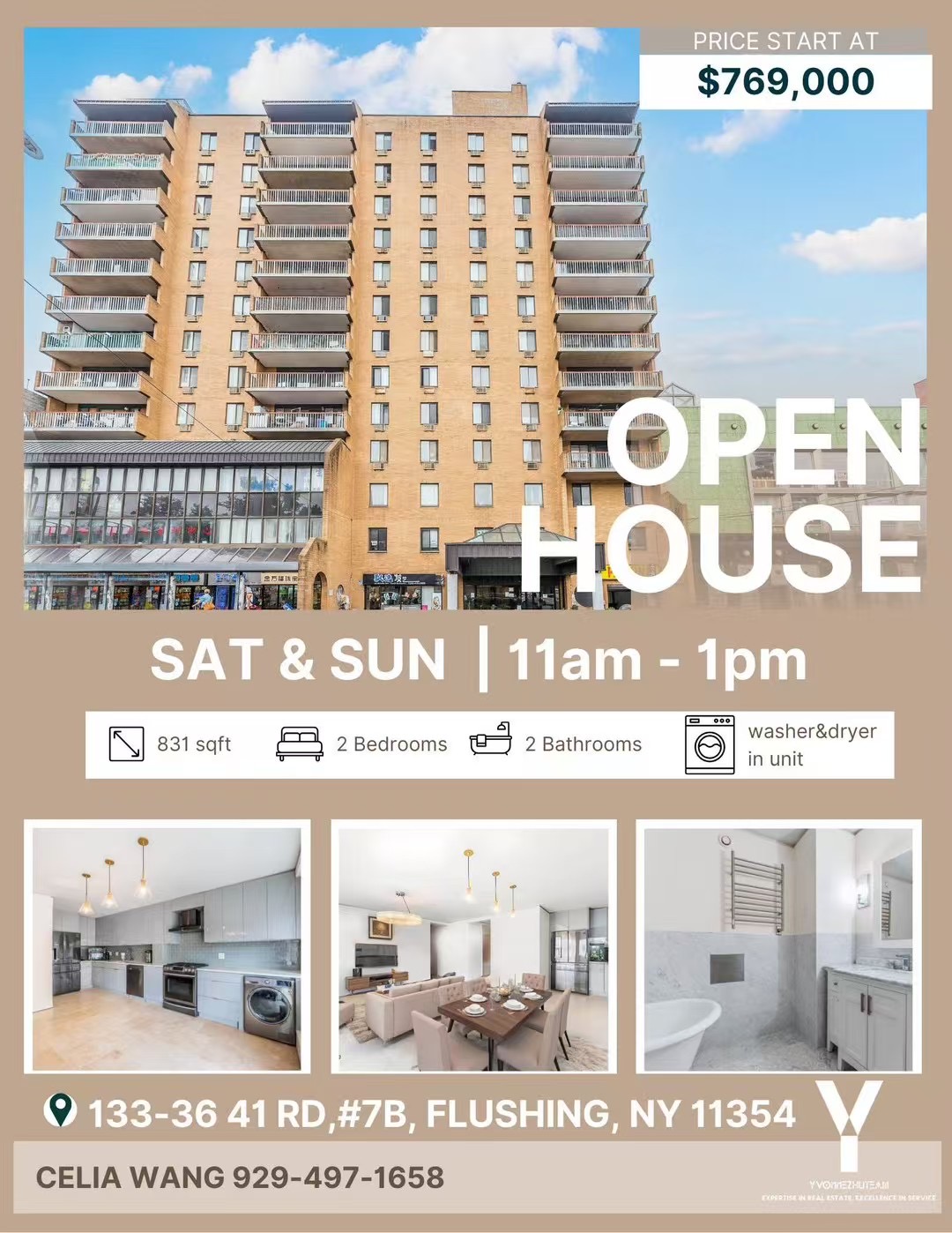 ✅室内布局方正,空间利用高✅带室内洗衣烘干机以及超大阳台。✅大楼带室内停车场✅5分钟内步行至7号地铁、长岛火车站、法拉盛图书馆✅周边餐馆美食众多,多家超市购物便利,医生诊所方便生活。asking$76.9w欢迎合作☎️9294971658 Celia