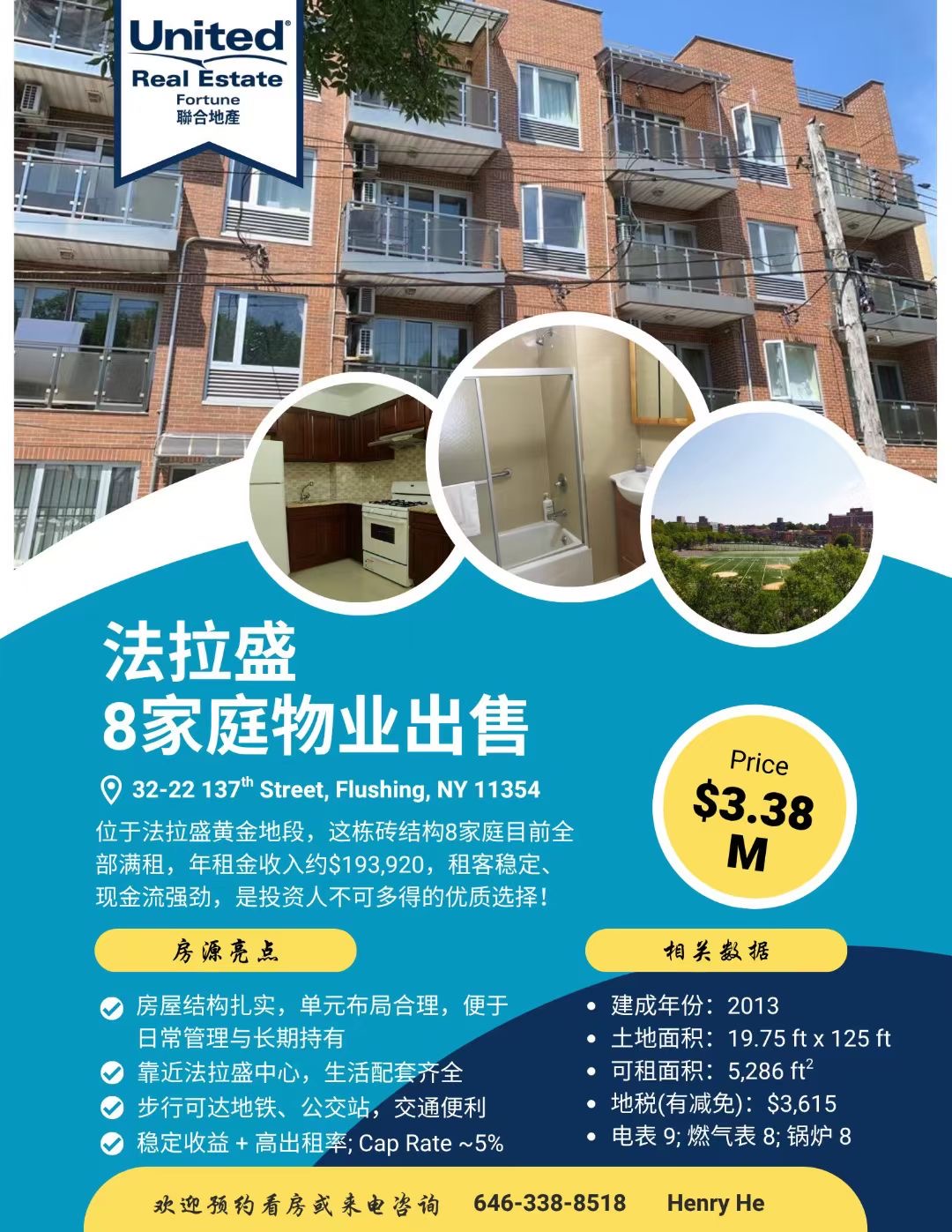 🏠 法拉盛8家庭投资物业出售|年租金近$194,000,回报稳健!📍地址:32-22 137th Street, Flushing, NY 11354💰售价:$3,380,000📏土地面积:19.75ft x 125ft