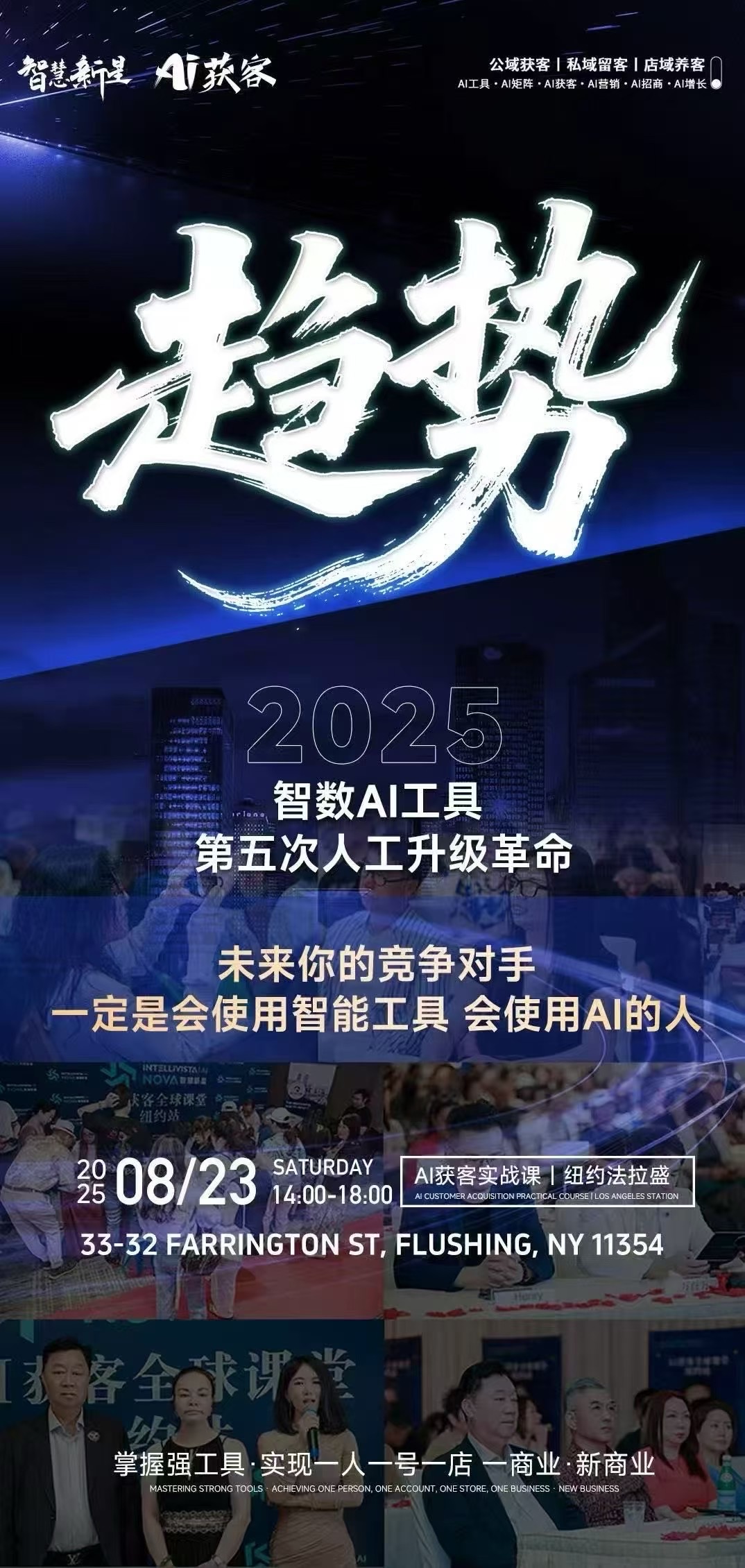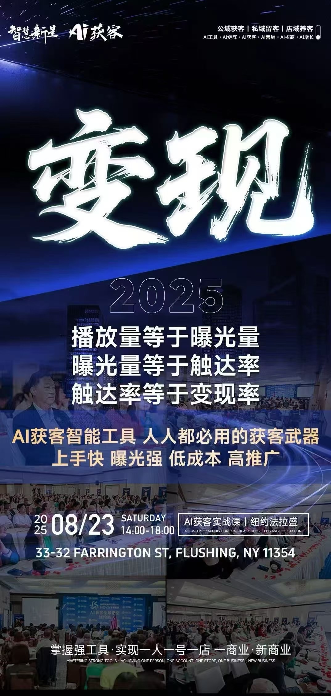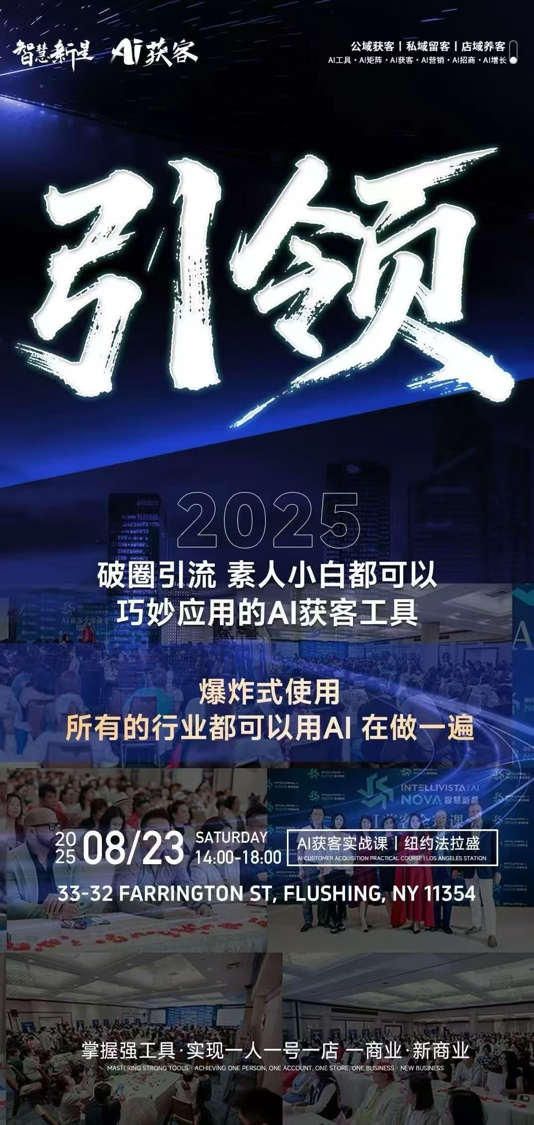 8.23 纽约法拉盛 AI 获客实战课,教你用 AI 重塑商业逻辑: