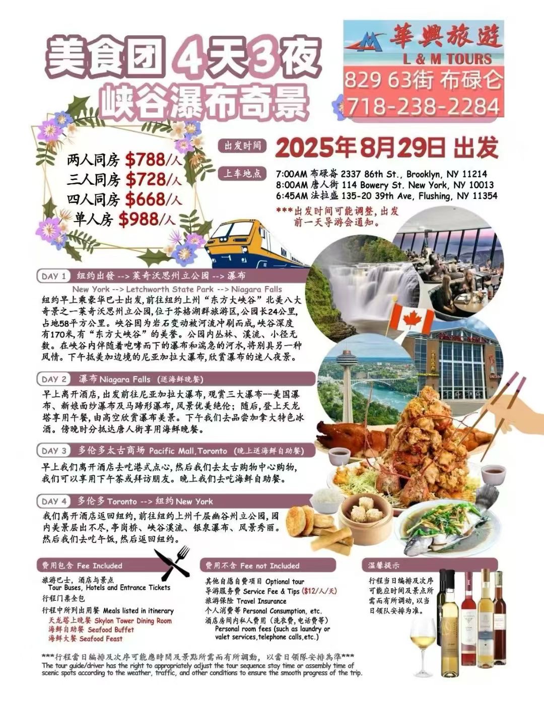 丰富线路随心选,精彩旅程伴您行!华兴旅游,细心守护每一站!26年专业与真诚,带您放心出游!718-238-2284