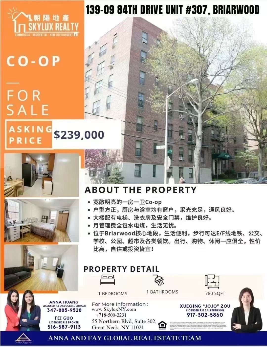 📞 欢迎来电咨询,预约看房! 把握机会,入住理想家园!接受预约 欢迎🈴作转发☕ANNA&FAY TEAM朝阳地产🔥🔥Skylux Realty ☎ Fay: 516-587-9113
