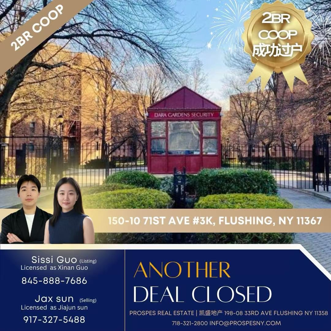 纽约地产经纪🎉过户喽🎉位于南法拉盛Kew Garden Hills的2房顺利交接原本屋主找了另外一个经纪帮她卖,但是卖了一年都没有卖出去。经过同事的介绍让我接手。幸运的是只花了2周我们就帮屋主找到合适的买家,并且顺利通过Board审核,一切都很丝滑。同样感谢买家的信任,也是之前买家推荐过来,只看过2次房就爽快订房,迅速签约。感谢林容律师为这单保驾护航,能够让我们顺利过户👍8️⃣🈷️已过户4️⃣套,非常旺的生日月,希望可以一直顺下去[嘿哈]