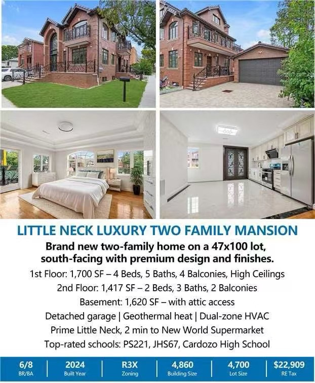 教育方面,该物业毗邻 PS 221 满分小学、MS 67 中学及知名卡多索高中,是小颈区域顶级学区房,孩子上学便利,保证教育资源优势。