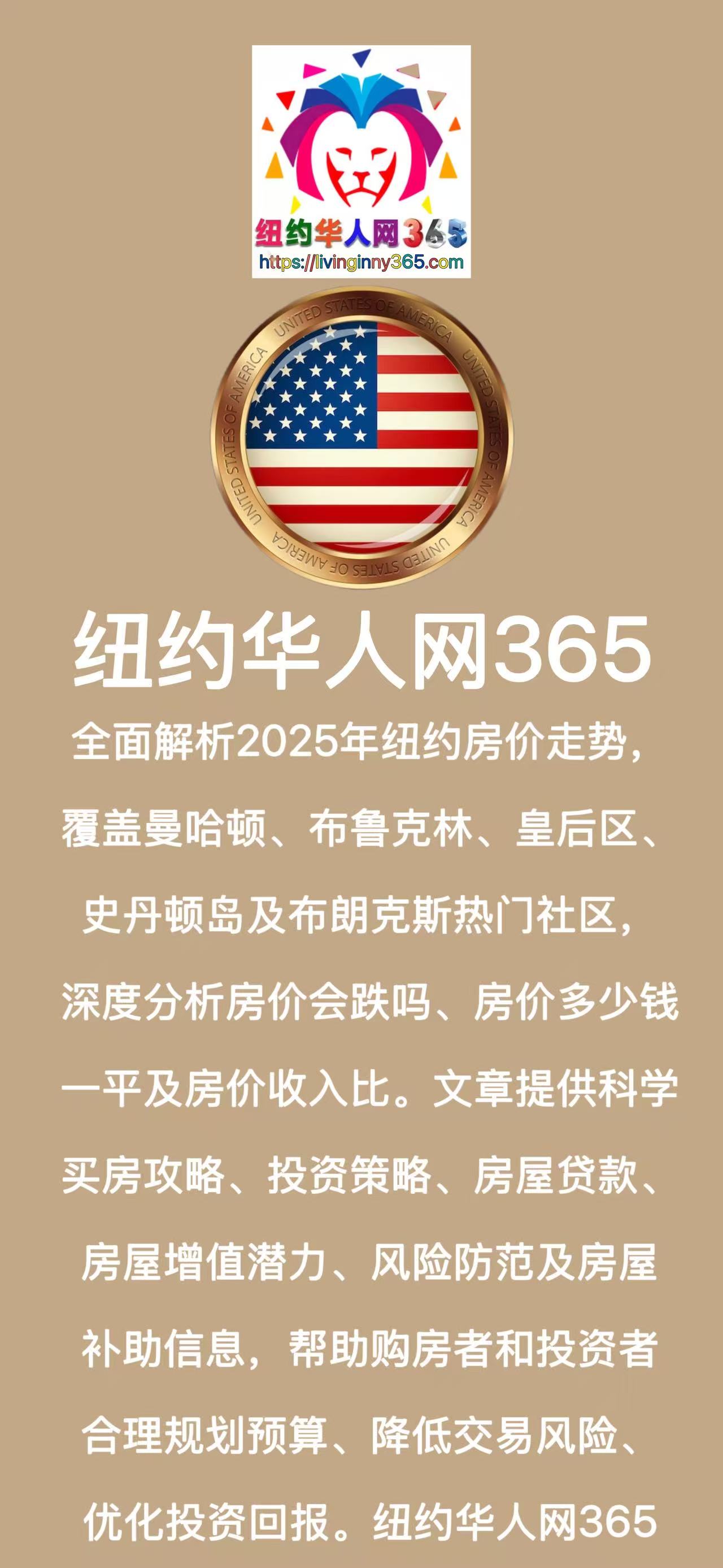 纽约房价走势2025:房价会跌吗?多少钱一平?收入比及投资分析。全面解析纽约房价走势2025,从曼哈顿、布鲁克林、皇后区、史丹顿岛到布朗克斯各区房价变化,详细分析房价会跌吗、房价多少钱一平及房价收入比。文章深入讲解买房策略、自住与投资建议、贷款利率、房屋增值潜力及风险防范措施,涵盖房屋补助、学区房、热门社区及交通便利性等要素,帮助购房者和投资者合理决策。