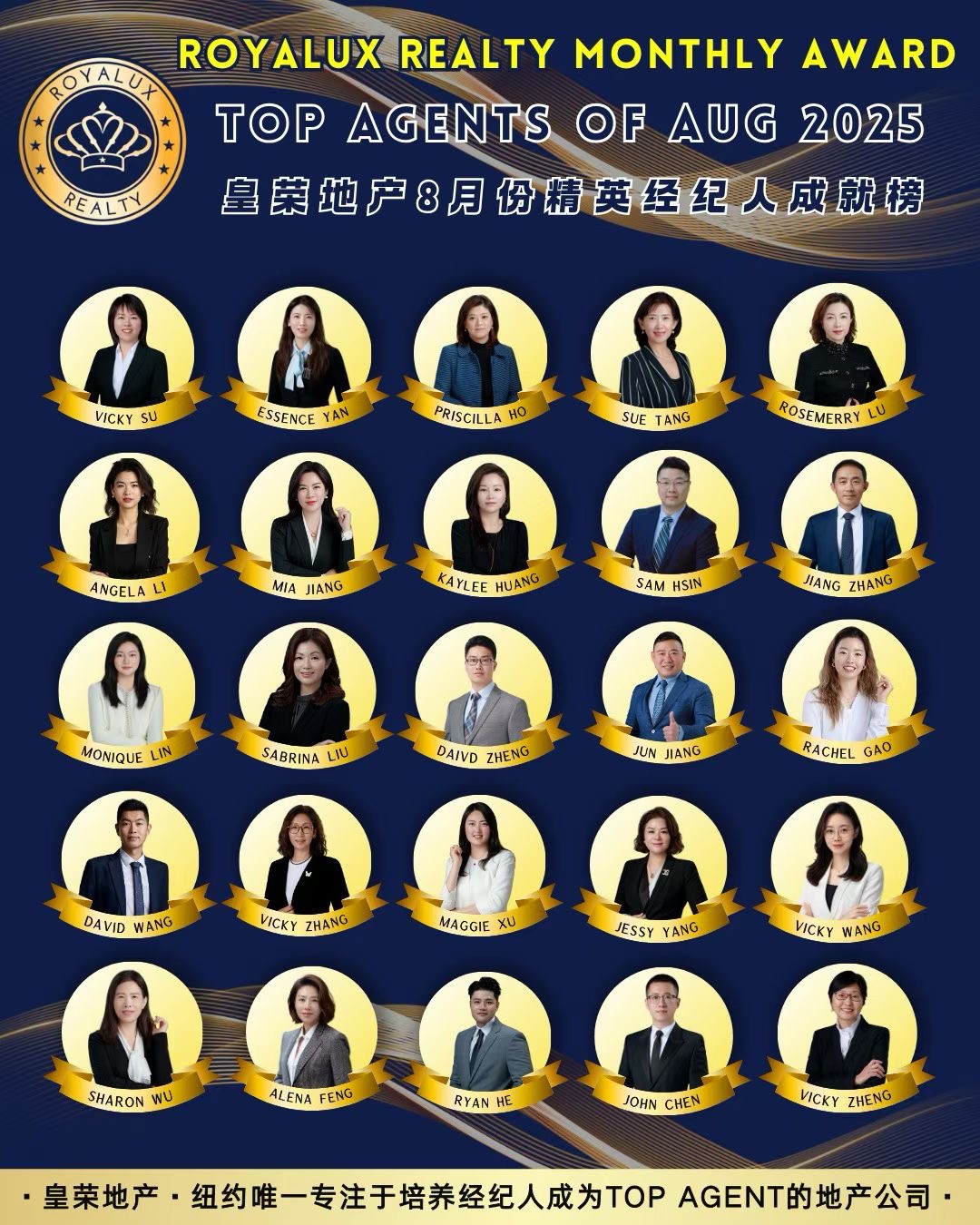纽约地产经纪🌟 8月再登皇荣销售精英榜!这个暑假,我们 皇荣地产团队再次刷新纪录!在全体同事的共同努力下,8月份我们完成了 95 单房产买卖交易 🏡。每一笔成交背后,都离不开客户的信任与团队的高效协作,也充分体现了我们对纽约房地产市场的专业洞察和精准服务。