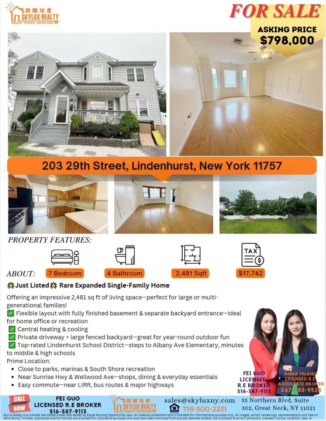 🌟 长岛Lindenhurst罕见大户型独立屋出售|超大空间、多代同堂首选、学区房热选 🌟