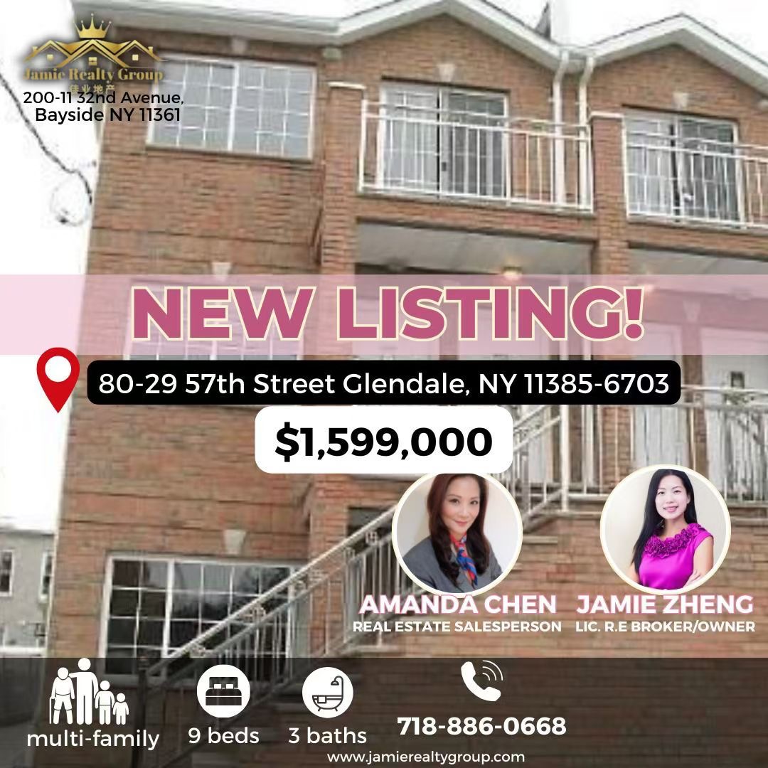 皇后区房子出售🔥 新上市 | Glendale 皇后区三家庭住宅出售 | 佳业地产代理 🔥
