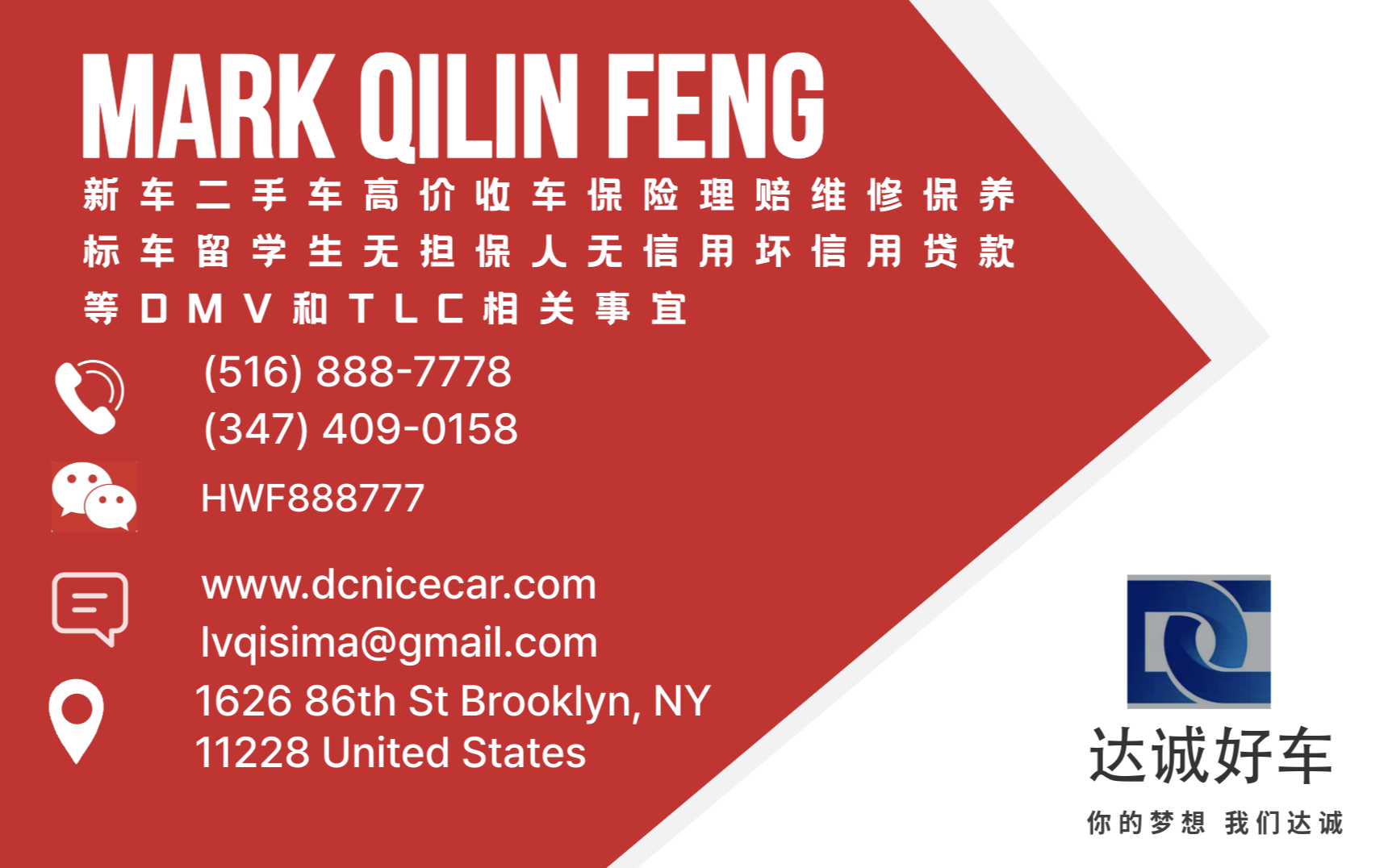 达诚好车,高价收二手车,达诚买卖新车二手车。保险,理赔,维修保养,改装,标车,DMV和TLC相关事宜。留学生,无担保人,无信用,坏信用贷款等。一站式一条龙🐲服务。