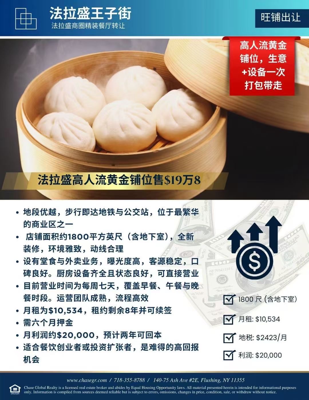 🔥独家,法拉盛核心地段王子街精装修餐厅,生意转让 只要19万