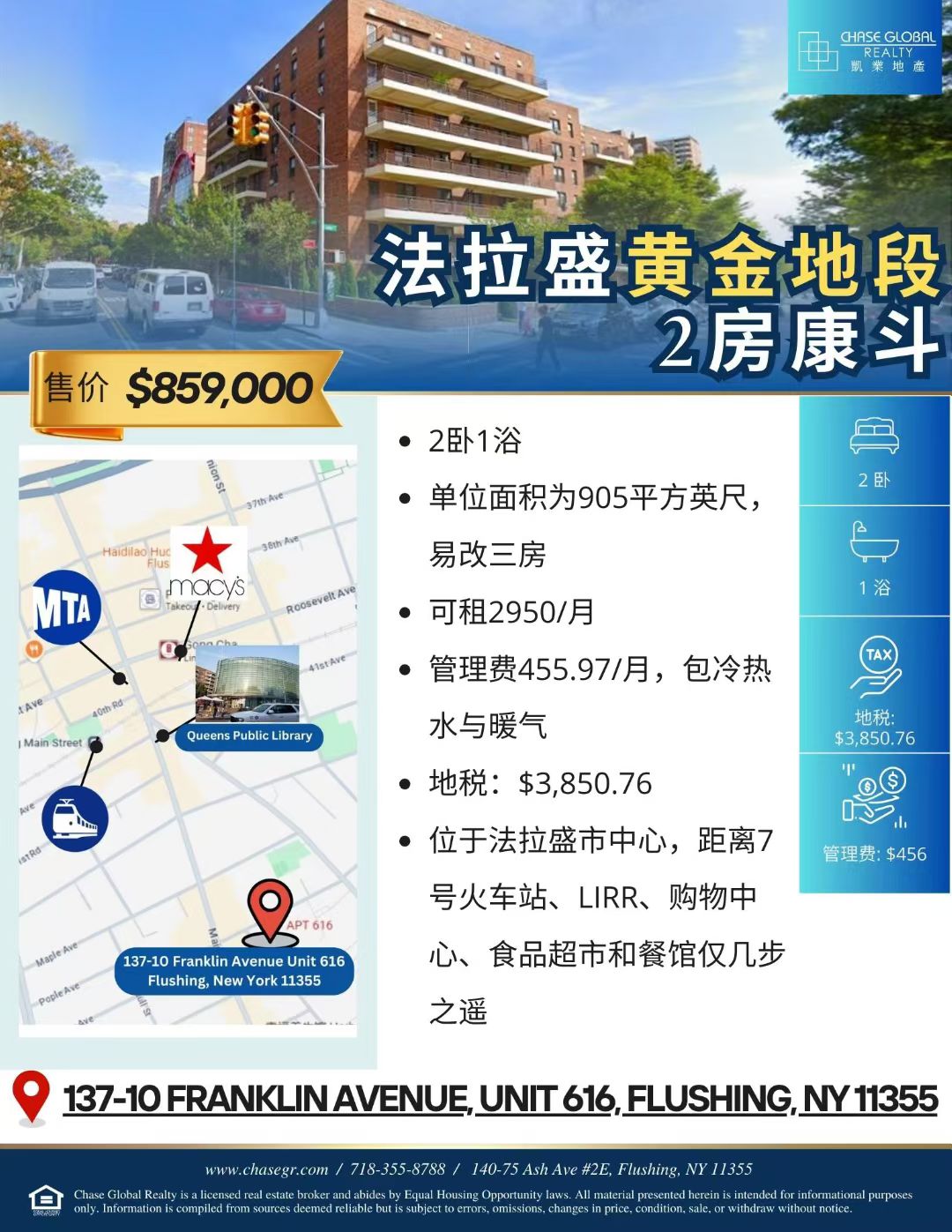 🎈法拉盛中心明亮2房2卫公寓,贝赛独栋豪宅海景房,艾姆赫斯特投资商业楼🎈最新Listing,欢迎合作: